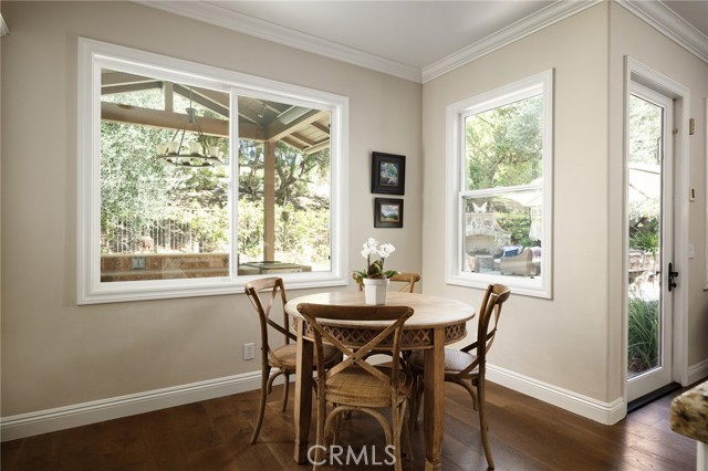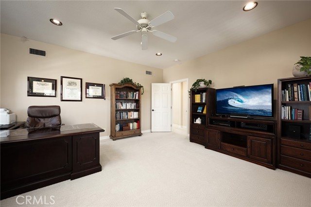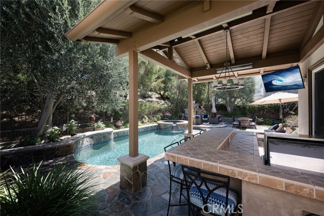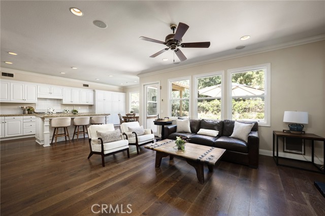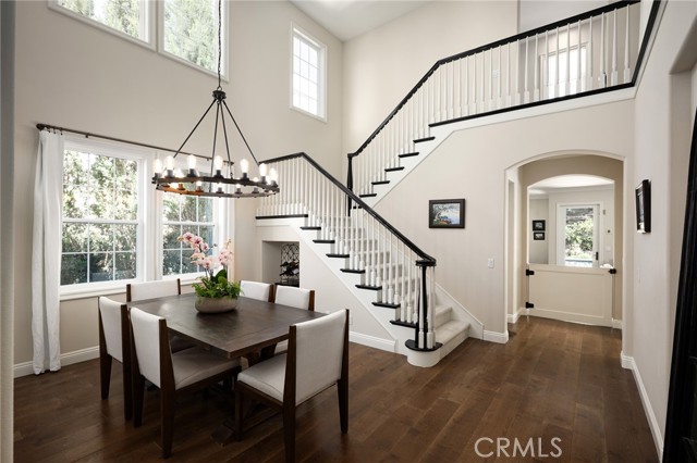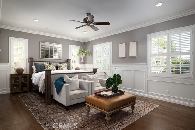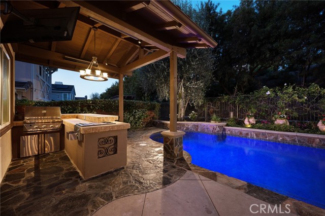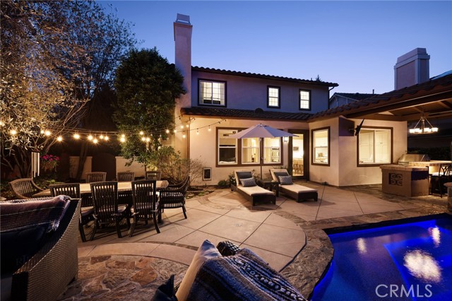 Tucked away on a charming, tree-lined cul-de-sac in the heart of Ladera Ranch, this exceptional 4-bedroom, 3-bathroom residence offers an elevated blend of timeless design, refined comfort, and expansive living spaces, including an oversized second-story bonus room ideal for a media lounge, executive office, or private retreat. Upon entry, you are welcomed by rich wood flooring that flows gracefully throughout the main living areas, complementing the home’s warm yet sophisticated aesthetic. Sunlight pours through thoughtfully placed windows, illuminating elegant architectural details such as crown molding, custom millwork, and tailored window casings that create a polished, designer feel throughout. The chef-inspired kitchen is both functional and striking, featuring a generous center island, beautifully crafted cabinetry, gleaming granite surfaces, and a full suite of stainless steel appliances. Designed for both everyday living and effortless entertaining, the kitchen opens seamlessly to the inviting family room, where a statement fireplace adds warmth and ambiance. An additional fireplace in the formal living area enhances the home’s sense of comfort and understated luxury. A main-level bedroom with adjacent full bath provides ideal accommodations for guests, extended family, or a private workspace. Upstairs, the primary suite offers a tranquil escape, complete with custom built-in features, an expansive walk-in closet, and a spa-inspired bath showcasing refined finishes, a soaking tub, and a serene atmosphere designed for relaxation. The backyard presents a private resort-style setting, highlighted by a PebbleTec pool and spa, a welcoming outdoor fireplace, and a covered patio with built-in BBQ — perfectly suited for year-round indoor-outdoor entertaining under the California sky. Ideally positioned within close proximity to Ladera Ranch’s renowned parks, pools, scenic trails, and top-rated schools, this home offers a lifestyle defined by comfort, elegance, and community.