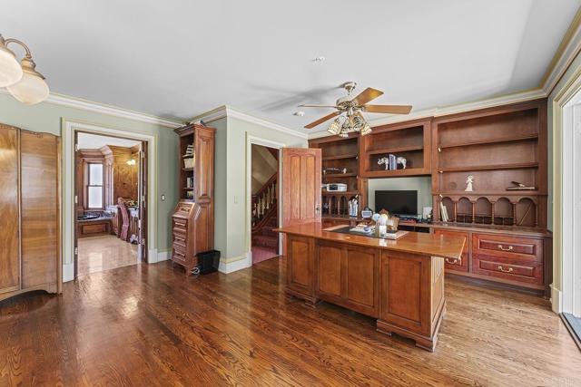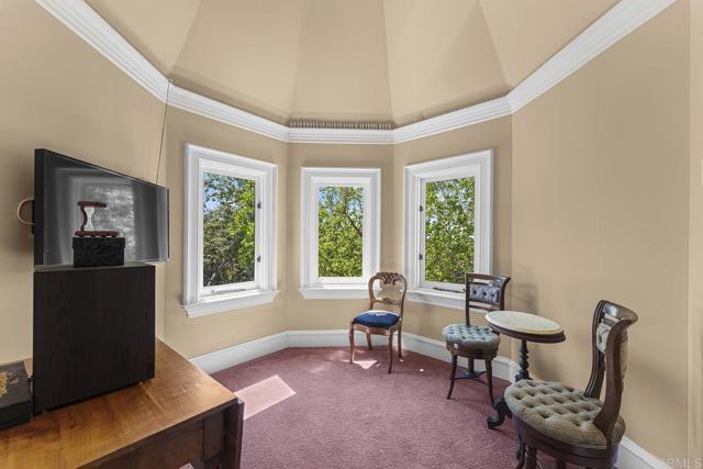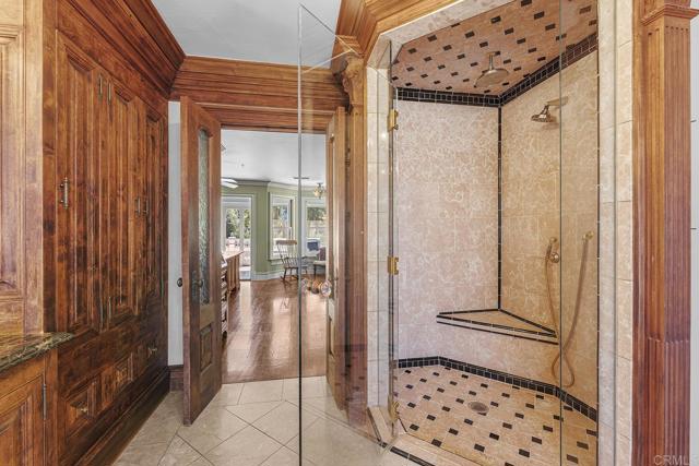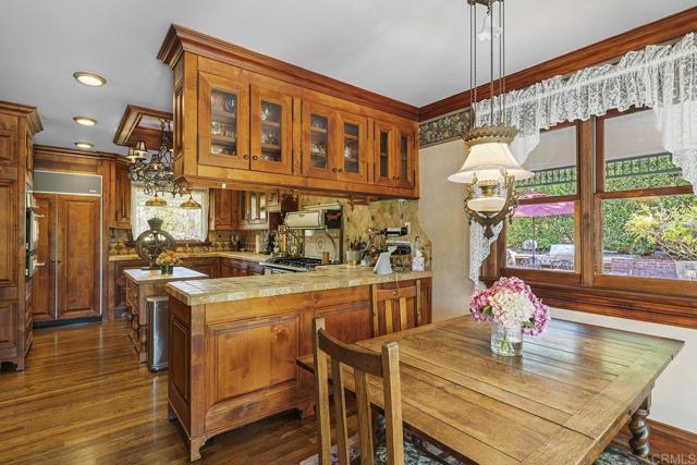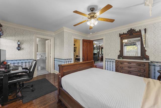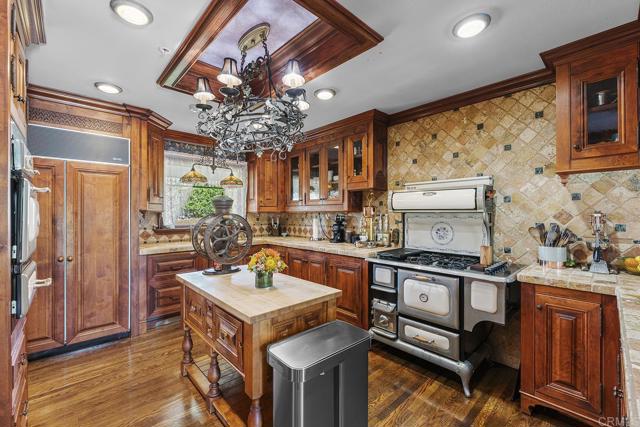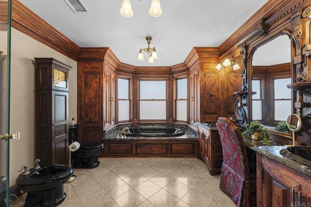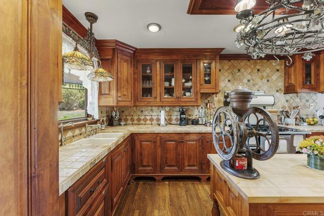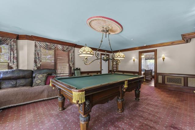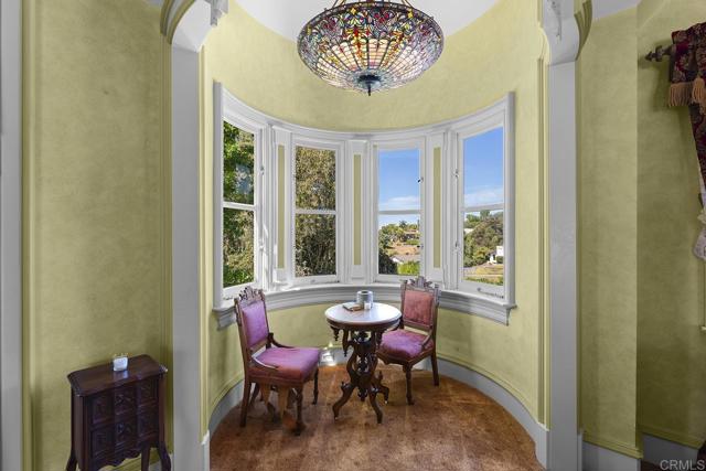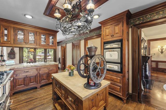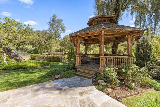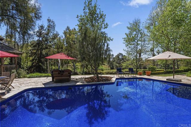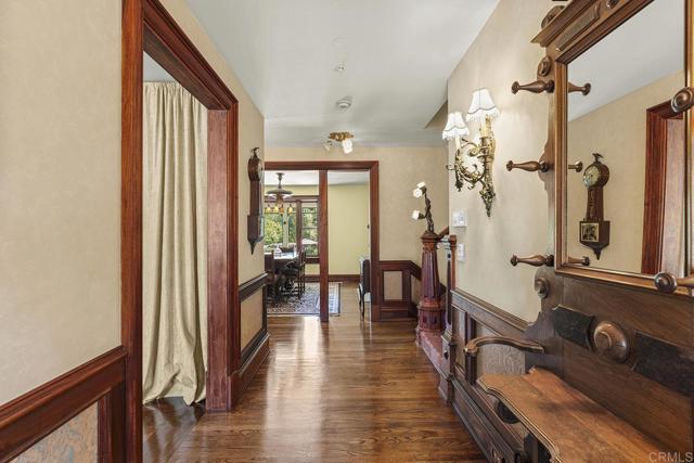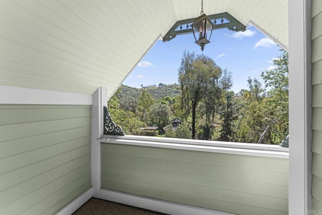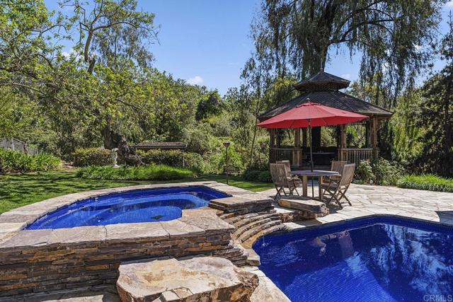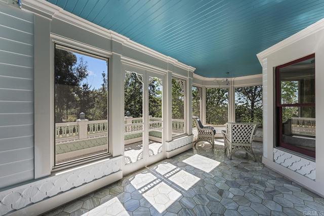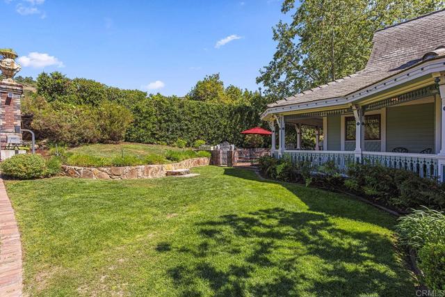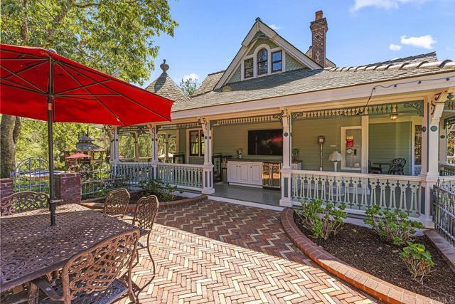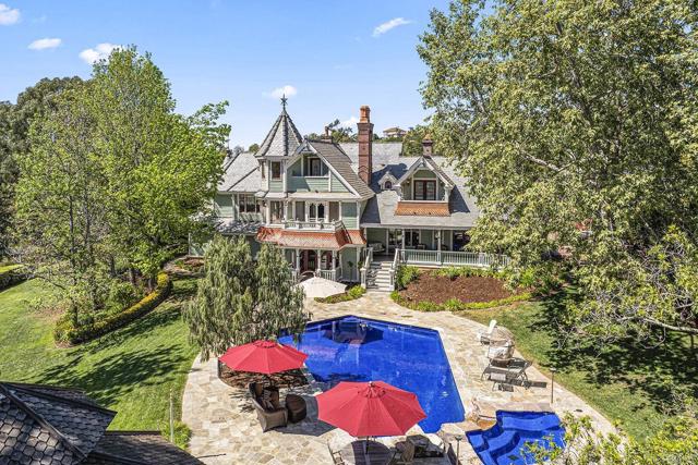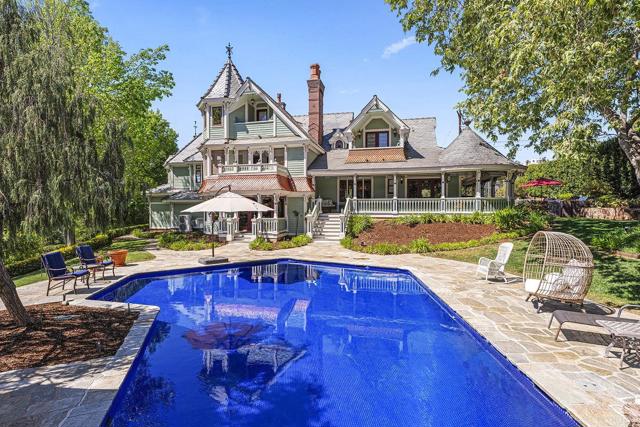 Looking for a quiet respite? This one-of-a-kind Queen Anne Victorian estate blends timeless architecture with modern comfort on over an acre of private, usable land in Vista’s desirable Warmlands. Custom-built by a Rancho Santa Fe master builder, the home showcases exceptional craftsmanship and attention to detail throughout. It features four ensuite bedrooms, each on its own level, with sitting areas, walk-in closets, and private baths. Three bedrooms offer private balconies overlooking the grounds, while the expansive primary suite includes a study, dressing room, spa-like bath, and distinctive architectural elements such as a turret, leaded glass windows, and a classic Victorian sleeping porch. From the 160-year-old iron entry gates to the hand-cut slate roof and hand-laid brick driveway, the property is rich with character. Antique lighting and hardware sourced from an 1850s Chicago hotel further enhance its authenticity. The main living spaces are both inviting and functional, offering a formal parlor, a billiards room with wet bar and fireplace, and kitchen featuring vintage-style appliances, a Sub-Zero built-in refrigerator, and French doors that open to the veranda. Designed for seamless indoor-outdoor living, the wrap-around covered veranda provides multiple seating areas, built-in speakers, and peaceful views of the surrounding landscape. The grounds include a mosaic-tiled saltwater pool and spa finished with beautiful sparkling Colorado Silverstone, a gazebo with fire pit, built-in BBQ, lush gardens, and a variety of mature fruit trees. A seasonal creek bed along the rear of the property enhances privacy, with open space and agricultural land beyond. Additional features include fully owned solar with battery backup and a Tesla charger. The lower portion of the property offers space for a future guest house or ADU, workshop, or sport court. Ideally located with convenient access to the 76 Freeway, this exceptional estate offers a rare combination of privacy, craftsmanship, and storybook charm.
