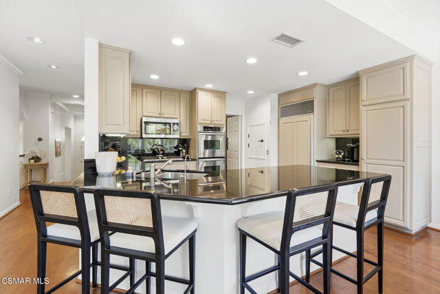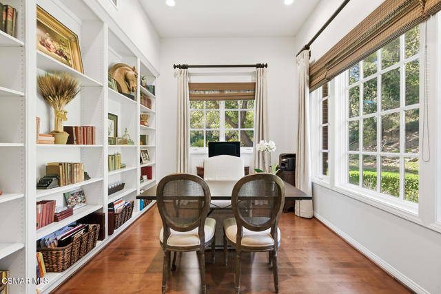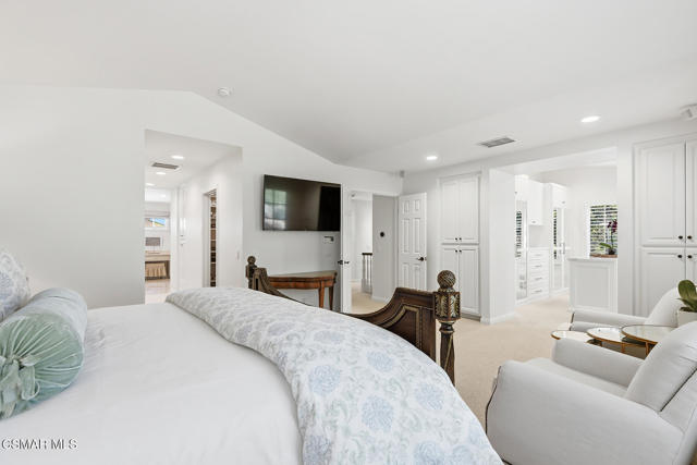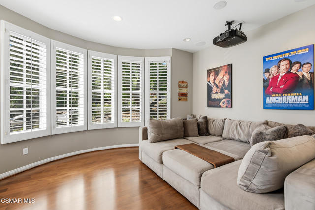 Experience the best of Sherwood living in this ideally situated end-unit townhome, set within one of Southern California's most prestigious gated communities. Spanning approximately 3,500 square feet, this light-filled residence offers 3 bedrooms, 2.5 baths, a dedicated office, and a media room with drop-down screen and surround sound--an ideal blend of comfort, style, and everyday livability.Thoughtfully designed for effortless living, the kitchen connects seamlessly to the family room, which features surround sound and a beautiful fireplace. A separate formal living room with its own fireplace adds an elegant space for entertaining, while the kitchen is also accessible from the formal dining room and includes a convenient grocery lift from the garage for added ease.A lower-level gym, upstairs laundry room, and a charming front patio with a serene, natural setting create comfortable spaces for both relaxation and daily living. An oversized 3-car garage with extensive built-ins and abundant storage further enhances the home's functionality.The impressive primary suite serves as a private retreat, featuring a spacious, spa-like bathroom and three closets, including a newly built custom dressing room by Elegant Cabinetry.Surrounded by natural beauty and just moments from the club and lake, this residence offers a rare opportunity to enjoy the coveted Sherwood lifestyle, with access to two clubs offering optional memberships and world-class amenities including golf, tennis, pickleball, swimming, and private Lake Sherwood access for boating, paddleboarding, kayaking, fishing, and more.