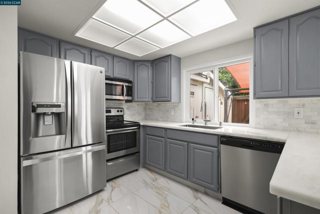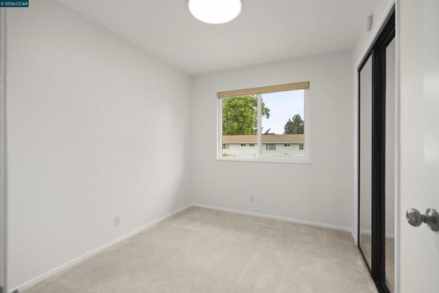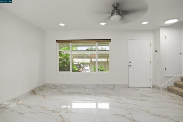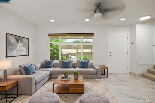 Charming North-East facing townhome ideally situated at the end of a quiet cul-de-sac in one of San Ramon’s most sought-after communities! This move-in ready home showcases bright, open living space, enhanced with oversized elegant tile flooring, upgraded baseboards, and large picture window. The modernized kitchen features quartz countertops, a full designer tile backsplash, stainless steel appliances, ample cabinetry, and a cozy dining area—perfect for everyday living and entertaining. A convenient downstairs guest bathroom and in-unit laundry add to the home’s functional appeal. Upstairs, the spacious primary suite offers mirrored closets, ceiling fan, and tranquil views of the private backyard. Two additional well-sized bedrooms provide versatility for a home office, guest rooms, or growing family needs. Step outside to a private backyard with a beautifully tiled patio—ideal for relaxing, entertaining, or enjoying peaceful outdoor moments. Additional highlights include dual pane windows, Nest smart thermostat, one assigned carport space, ample guest parking, and access to the community HOA pool. Ideally located near top-rated San Ramon schools, parks, shopping, dining, City Center Bishop Ranch, and HWY 680—this home combines comfort, convenience, and value in today's market!