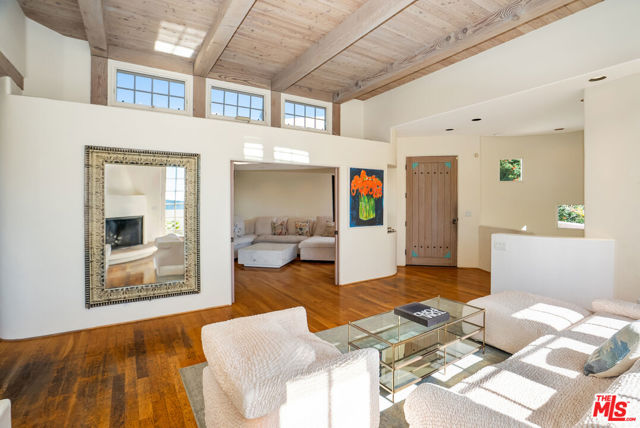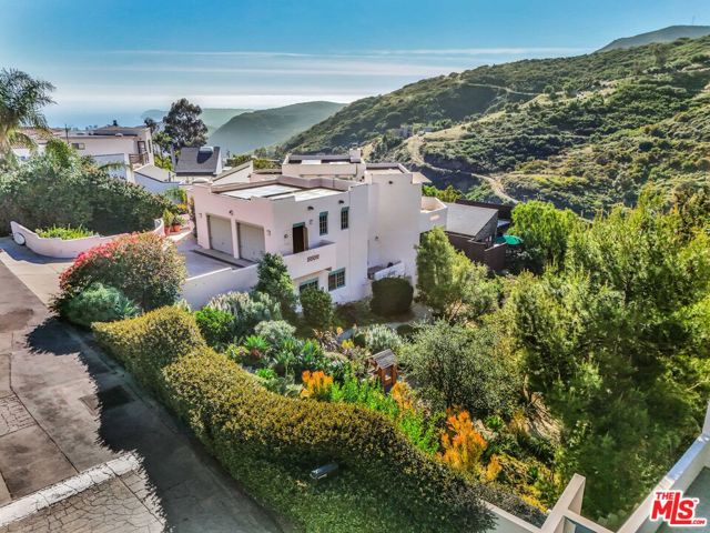 Set within the coveted El Nido enclave of Corral Canyon, this beautifully distinctive retreat spans a rare double lot with sweeping ocean views toward Point Dume offering an exceptional blend of privacy, scale, and accessibility that is increasingly hard to find in Malibu. A sense of arrival unfolds as light pours into the open-concept living spaces, where French doors dissolve the boundary between indoors and out, leading to a wraparound deck with tranquil ocean vistas. Designed for both intimate living and effortless entertaining, the home balances warmth and sophistication throughout. The kitchen, thoughtfully updated with custom cabinetry, farmhouse sink, and quartz countertops, anchors the space while flowing seamlessly into the dining and family areas. The lower level reveals a highly versatile layout tailored to modern living. The primary suite is a true sanctuary, defined by soaring beamed ceilings, a private deck, walk-in closet and a spa-like bath designed for relaxation. An additional 4 rooms currently configured as bedrooms offer flexibility for guest suites, office or creative space, adapting effortlessly to a variety of lifestyles. The grounds are truly special lushly landscaped with winding garden paths, ambient evening lighting, and an array of mature fruit trees including lemon, lime, fig, orange, and blood orange. Multiple outdoor areas invite relaxation, play, and entertaining, while a private spa creates the perfect setting to unwind under the stars. A separate ADU with private entrance and kitchenette presents an exceptional opportunity for guest accommodations, income potential, or multigenerational living adding a valuable layer of flexibility and investment appeal. Additional features include a two-car garage equipped with Tesla and Rivian charging, a dedicated gym with French doors, solar power, cold plunge, a Generac generator, newer HVAC and water heater, and generous storage throughout including an expansive storage area on lower level. A rare offering that combines space, character, and lifestyle this is Malibu canyon living at its most compelling.