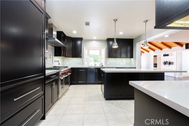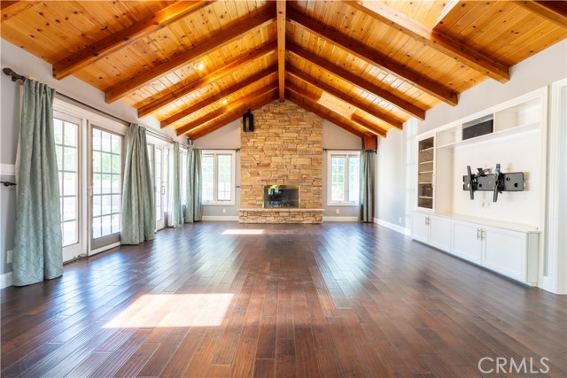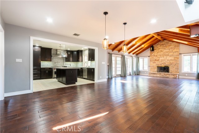 Looking for a Northridge home for lease with space, character, and standout features? This 4-bedroom, 3-bathroom home offers 2,544 sq ft on an expansive 10,913 sq ft lot with RV access and a private pool—perfect for comfortable living and entertaining.vStep inside through the formal entry into a spacious living room featuring soaring vaulted wood-beamed ceilings, rich wood flooring, and a fireplace that creates a warm and inviting focal point. Just off the kitchen, a formal dining area provides the perfect setting for gatherings and entertaining. The massive separate family room showcases the same stunning wood-beamed ceilings and is highlighted by a dramatic stone fireplace, built-in cabinetry, and abundant natural light from multiple windows and skylights, creating an open and airy feel. The gourmet chef’s kitchen is designed for both everyday living and entertaining, complete with a large center island, quartz countertops, Wolf range, built-in refrigerator/freezer, and a beverage refrigerator. All four bedrooms are generously sized, including a spacious primary suite with its own private bath. The additional bathrooms are well-appointed, making this home ideal for families or those needing extra space. Step outside to enjoy a private backyard featuring a pool and plenty of room to relax or entertain, along with RV access for added convenience. Plus, a owner owned solar system to reduce your utility bill. Located close to CSUN, within Granada Hills Charter High School boundaries, and near shopping, dining, parks, and easy freeway access.