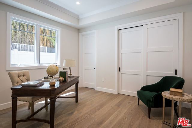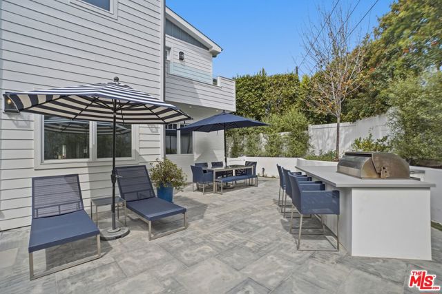 Set in the coveted El Medio Bluffs neighborhood of Pacific Palisades, 530 Arbramar Ave is a beautifully designed 2017 Cape Cod inspired coastal residence that seamlessly blends timeless charm with modern luxury. This 5-bedroom, 6-bathroom home offers an ideal layout for both everyday living and effortless entertaining. A welcoming foyer opens to a warm sitting room with a fireplace, leading into a spacious dining area perfect for gatherings. A striking glass-enclosed, temperature-controlled wine cellar adds a sophisticated focal point. The gourmet kitchen is the centerpiece of the home, featuring a large island, premium Wolf appliances, and a walk-in pantry. The adjacent family room, complete with a second fireplace and accordion-style folding glass doors, opens fully to the backyard creating a true indoor/outdoor living experience ideal for entertaining. The main level includes an en-suite bedroom, ideal for guests or multi-generational living, along with a dedicated theater room for movie nights and gatherings. Upstairs, four additional en-suite bedrooms provide comfort and privacy for all. The luxurious primary suite is a true retreat, showcasing vaulted ceilings, a fireplace, an expansive walk-in closet, and two private balconies that capture the coastal breeze. The spa-like primary bathroom offers a serene space to unwind. The backyard is thoughtfully designed for relaxation and entertaining, featuring lush turf, a fire pit, and an outdoor kitchen perfect for al fresco dining. Additional highlights include an attached two-car garage with an EV charger and direct access into the home. This is a must-see!