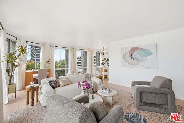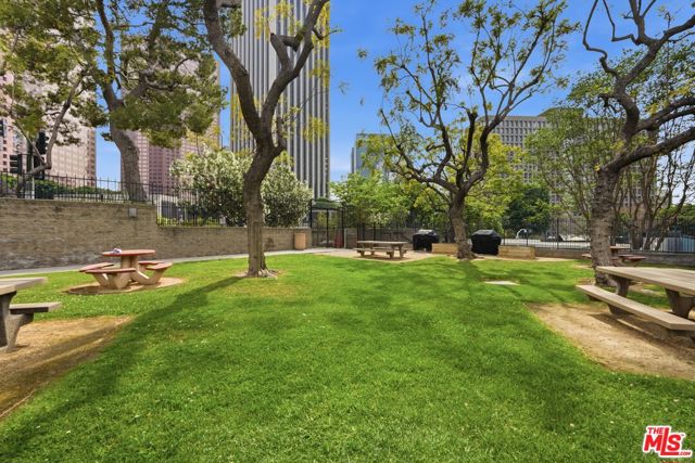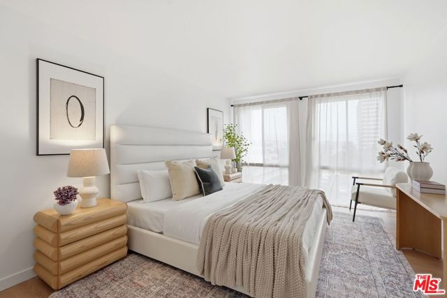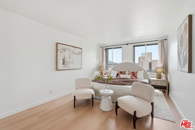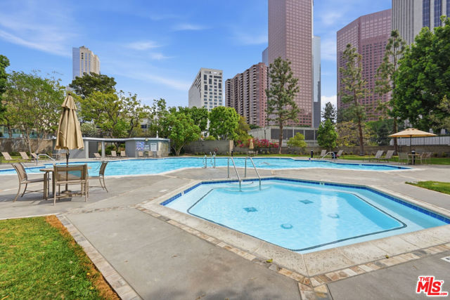 Experience Modern Luxury at Bunker Hill Tower with this Fully Reimagined Corner Unit. Welcome to Unit 710, a stunning 2-bedroom, 2-bathroom corner residence where mid-century iconic architecture meets contemporary coastal-chic design. Perched on the 7th floor of the legendary Bunker Hill Tower, this spacious 1,234 sq. ft. home has been meticulously updated to offer a fresh, modern sanctuary in the heart of Downtown Los Angeles. Fresh, Modern, & Turn-Key Step across brand-new wood laminate flooring that flows seamlessly through an open-concept living space, framed by signature floor-to-ceiling windows. The entire home has been professionally painted and finished with new floorboards throughout, creating a crisp, cohesive aesthetic. The kitchen and both bathrooms feature brand-new, stylish tile work, while the kitchen's refinished cabinetry provides a sleek, updated feel. Both bathrooms have been partially renovated with modern sink fixtures and mirrors. Every window is now adorned with brand-new curtain rods and custom curtains, allowing you to perfectly frame your panoramic views of the Hollywood Sign and the mountain skyline. With a brand-new thermostat, climate control is at your fingertips. Resort Style Living on 2.5 Acres. Living here feels like a permanent vacation. Bunker Hill Tower is famous for its "city-within-a-city" amenities, including: 24/7 Security & Concierge: Unparalleled safety and service. Athletic Excellence: Olympic-sized heated pool, spa, two fitness centers, and tennis/pickleball courts. Private Oasis: Over two acres of manicured grounds, including a rose garden, walking paths, and a BBQ/picnic area. On-Site Convenience: A private grocery market, dry cleaners, and hair salon are located right in the lobby. The Location & Value Forget multiple bills, your monthly HOA is truly all-inclusive, covering electricity, high-speed internet, basic cable, gas, water, HVAC, and access to all amenities. You are just steps away from The Broad, Disney Concert Hall, and the Grand Avenue Arts Metro Station. This unit includes assigned parking and ample gated guest parking, a rare DTLA luxury. Don't miss the opportunity to own a modernized piece of the Los Angeles skyline.