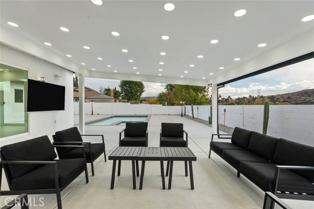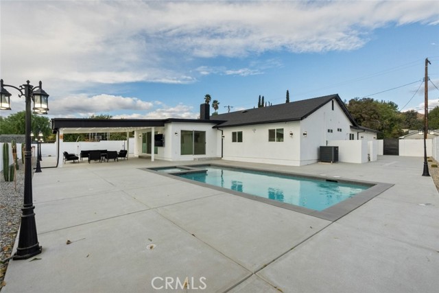 This beautifully remodeled 3-bedroom, 2-bathroom home with 1,986 SqFt of living space in Lake View Terrace, Sylmar, is now available. The property is packed with modern upgrades and desirable features, including a brand-new swimming pool and spa, horse-friendly zoning, and direct access to the expansive 1,300-acre Hansen Recreation area. Inside, you'll find recessed lighting, a spacious family room with a fireplace, and a stunning open-concept kitchen featuring white cabinets, a large island with extra storage, and elegant marble-patterned countertops. The primary bedroom offers a bright, serene retreat with a walk-in closet and a luxurious en-suite bathroom complete with dual sinks, an LED mirror, and a walk-in shower. The additional bedrooms are spacious and bright, with access to the modern hallway bathroom. Notable upgrades include level 2 EV charging, ethernet hardwiring throughout, brand-new 200-amp electrical panel and wiring, tankless water heater and 5-ton HVAC system, mini-split HVAC in the garage, potential for an ADU and brand-new roof, porcelain tile floors, and kitchen. The backyard is a private oasis with a new pool, a covered rear porch with recessed lighting, and scenic nature views, offering plenty of space for relaxation and entertainment. This property is a rare gem, ready for you to move in and enjoy!