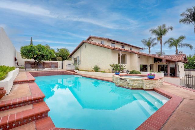Welcome to your own private retreat on a quiet cul-de-sac in the sought-after Crownpoint Place neighborhood, this beautifully maintained Spanish Mediterranean pool home offers timeless charm, thoughtful upgrades, and exceptional indoor-outdoor living. Set on an expansive .34-acre lot, this turnkey property features 4 spacious bedrooms, 2.5 bathrooms, and stunning architectural details throughout. From the moment you step inside, you’ll appreciate the vaulted ceilings, warm fireplace, and inviting layout designed for both everyday comfort and entertaining. The remodeled gourmet kitchen is a standout, featuring Quartz countertops, a striking tile backsplash, self-closing drawers, a spice drawer, recessed lighting, upgraded Bosch stainless steel appliances, and a beverage fridge. Upstairs, the oversized primary suite serves as a true retreat with its own private balcony, a huge closet with extra storage, and a beautifully appointed bath complete with an exquisite Spanish-tiled soaking tub and separate shower. The backyard is a private oasis with a custom pool, built-in BBQ, horseshoe pit, large usable yard, and generous outdoor entertaining spaces. Newer HVAC system & ducting. SOLAR is Owned. Newer Electrical panel and pool equipment. Newer Roof. Mature fruit trees including Meyer lemon, orange, and lime add to the charm, while expansive mountain views from both the front and back yards create a peaceful setting. No HOA. No Mello Roos.