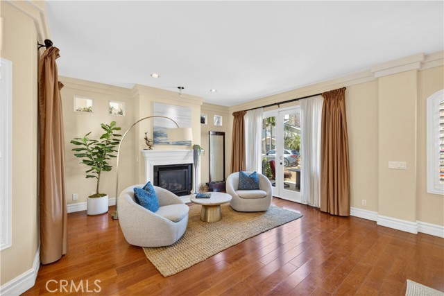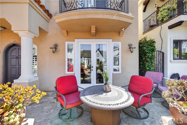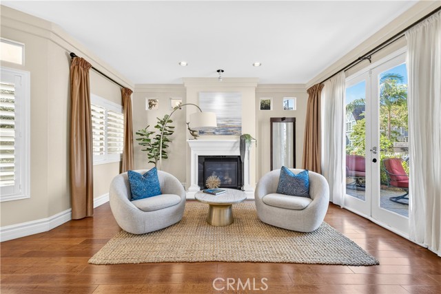 Located on picturesque Naples Island just steps from the canal, this Mediterranean-style home blends coastal charm with a highly functional layout. Built in 1998, the residence offers 3 bedrooms, 2.5 baths, plus a spacious upstairs loft ideal for a secondary living area, office, or media space. The main level features a fantastic entertaining floor plan with high ceilings, warm wood flooring throughout, and seamless flow between living spaces. The inviting living room includes a fireplace and French doors that open to the front patio, while the expansive kitchen opens directly to the family room—creating a natural gathering space at the heart of the home. A private courtyard patio offers a quiet outdoor retreat, ideal for relaxing or entertaining. Upstairs, the secondary bedrooms are generously sized with large closets and share a full hall bath, along with a convenient upstairs laundry room. The primary suite offers a private balcony, walk-in closet, and a beautiful spa-like bath with dual sinks and a separate vanity. Ideally located near the canals, Alamitos Bay, and the Long Beach Yacht Club, and within easy walking distance to trendy restaurants and shops, this home captures the essence of Naples Island living.