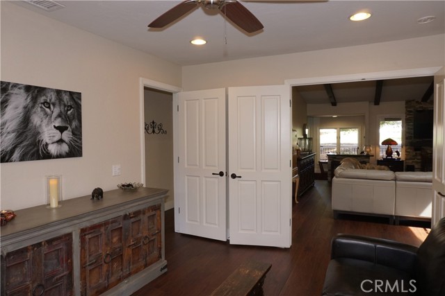 Welcome to 38220 Oaketree Loop, Murrieta, CA; located in one of Southern California’s top-rated cities and nestled within the prestigious, guard-gated Bear Creek Golf Club community, where privacy, beauty, and resort-style amenities create an unparalleled lifestyle. This single-story detached condo has been thoughtfully remodeled to blend modern elegance with everyday comfort. Custom front doors make a striking first impression, opening to a bright, refreshed interior enhanced by skylights, fresh paint, and a seamless, flowing layout. Positioned on the 17th fairway, the home is filled with natural light and showcases serene golf course views accented by mature oak trees, bringing a sense of calm and natural beauty into your daily routine. Featuring two bedrooms plus a versatile office, den, or potential third bedroom, the home offers flexibility to suit your lifestyle, whether working from home, hosting guests, or creating a private retreat. Two and a half beautifully remodeled bathrooms showcase designer finishes, while dual fireplaces create warm, inviting spaces to relax and unwind. Step outside to your private outdoor living space with a covered patio and TV, perfect for entertaining or enjoying peaceful evenings in a tranquil setting overlooking the course. Beyond the home, Bear Creek offers an exceptional country club lifestyle with a clubhouse for dining and entertainment, along with access to social events and resort-style amenities including sparkling pools and spas, tennis courts, fitness and workout facilities, beautifully maintained grounds, and a premier golf course—all within the security of a 24-hour guard-gated community. Elegant, low-maintenance living in a prestigious community—this is a rare opportunity.