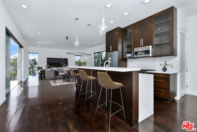 Stunning contemporary lease in the heart of West Los Angeles, offering approximately 2,100 square feet of thoughtfully designed living space with 3 bedrooms and 2.5 bathrooms. This light-filled residence features an open-concept floor plan with expansive living areas, wide-plank floors, and oversized windows that flood the home with natural light. The chef's kitchen is beautifully appointed with sleek white countertops, custom cabinetry, stainless steel appliances, and a large center island, perfect for both everyday living and entertaining. The main living level offers seamless indoor-outdoor flow with two private balconies, ideal for relaxing or hosting. The spacious primary suite serves as a peaceful retreat with generous closet space and a spa-like en-suite bathroom. Two additional bedrooms are well-sized and each include their own private balcony, offering flexibility for guests, family, or a home office. Additional highlights include secure, off-street parking and modern finishes throughout. Ideally located in West Los Angeles, just minutes from Santa Monica, Brentwood, and Westwood, with convenient access to top dining, shopping, and the beach. A rare opportunity to lease a stylish, modern residence in one of the Westside's most desirable locations