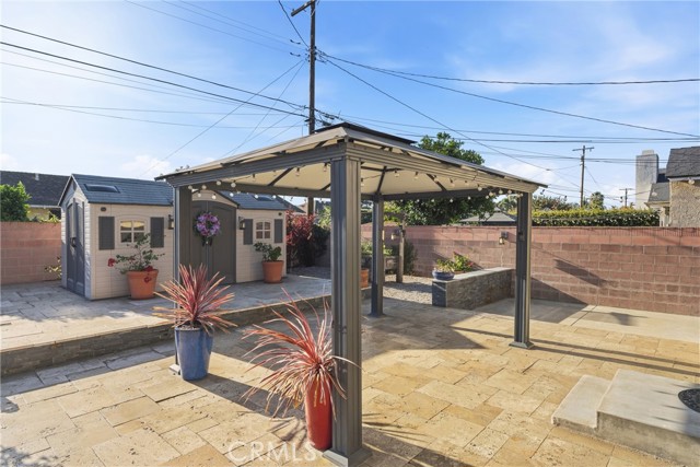 This is a great opportunity to own a 2-bedroom, 2-bathroom home in the highly desirable Lakewood Park neighborhood, a true standout in a community where two-bedroom, two-bathroom homes can be hard to find. Very well-maintained and move-in ready, this home combines timeless charm with upgrades throughout. Inside, a thoughtfully upgraded kitchen impresses with quartz countertops, a timeless marble subway backsplash, stainless steel appliances, and under- and above-cabinet lighting, which are all designed for both function and style. A dedicated laundry area with a washer and dryer sits conveniently adjacent to the kitchen. Both bathrooms have been updated: one features a classic marble floor and crown molding. The spacious living and dining rooms flow together seamlessly, are freshly painted and trimmed with crown molding, and they open directly onto the showstopper of this home: a sprawling approx 1,000 square-foot two-level travertine deck complete with a gazebo and storage shed. There is a separate concrete pad accented by a slate and soapstone wall for your future BBQ, smoker, or spa. This outdoor sanctuary nearly doubles your activity space and is ideal for entertaining or peaceful personal time. Major systems have all been addressed: tankless water heater and NuvoH20 water softener (cartridge system), central HVAC, dual-pane windows with no-show integrated screens, updated shingle roof, full PEX re-pipe, remote-controlled garage door, and automatic sprinklers in the front yard. As the home is situated just blocks from restaurant row, the mall, movie theaters, amenities, city parks, and within the Long Beach Unified School District, this home truly has it all. This is Lakewood living at its finest. The Listing Agent is related to the Seller. Seller is a licensed real estate agent. A few photos include virtual staging to show potential use of space.