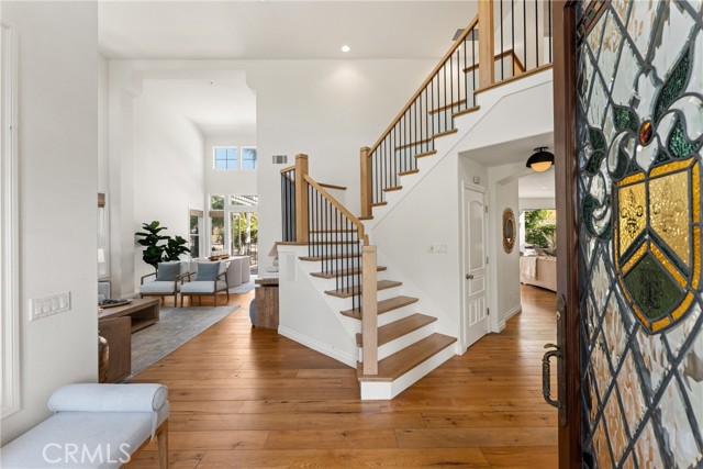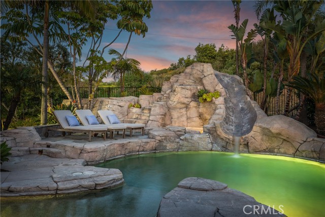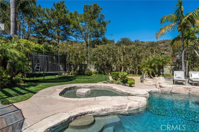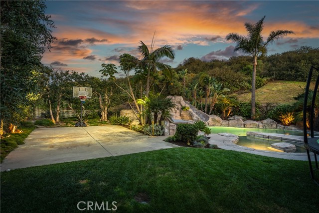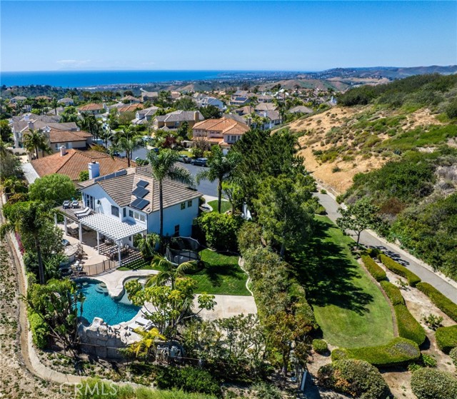 From the moment you arrive, there’s a sense that this is something truly special. Ideally positioned at the end of a quiet cul-de-sac in Rancho San Clemente, this exceptional residence sits on a rare, oversized lot, offering privacy, space, and an extraordinary resort-style setting. The backyard is designed for both relaxation and connection, featuring a custom saltwater pool with slide, sunning shelf, and waterfall, spa, built-in BBQ island, firepit, half basketball court, sprawling lawns and multiple gathering areas. Expansive bifold doors create a seamless indoor-outdoor experience, opening to a covered, heated patio with ceiling fans and ambient lighting, perfect for year-round enjoyment. Inside, the five-bedroom, three-bath home blends refined design with everyday comfort. A dramatic two-story entry is complemented by a striking double staircase with solid oak treads and iron railings. The gourmet kitchen is appointed with custom cabinetry, Dacor appliances, Brazilian granite countertops, farmhouse sink, and a generous center island, flowing effortlessly into the inviting family room. A main-level bedroom and beautifully updated bath offer flexibility, while upstairs includes three secondary bedrooms and a spacious primary suite with a private balcony and sitting area. Thoughtful upgrades include paid solar, dual AC, QuietCool whole house fan, new Anderson windows and doors upstairs, updated flooring, Ethernet wiring, integrated audio with exterior speakers, and whole-home water filtration with softener and reverse osmosis. Located near the Ridgeline Trail and just minutes to charming downtown San Clemente, featuring boutique shopping, locally acclaimed restaurants, and world-class surf breaks and beaches. This home offers an exceptional blend of comfort, style, and coastal lifestyle.