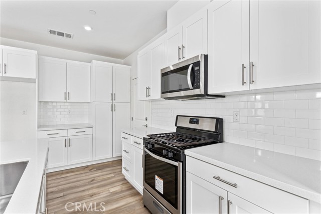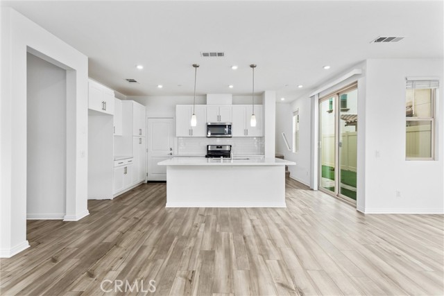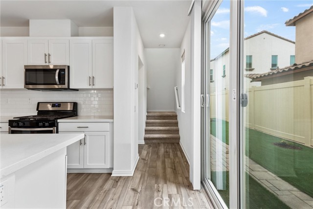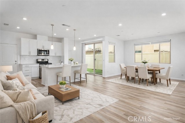 Welcome to this beautifully upgraded 4-bedroom, 3-bath home located in the newer gated community of The Enclave—where comfort, efficiency, and thoughtful design come together. Featuring paid-for solar and a highly sought-after downstairs bedroom with a full bath, this home offers flexibility for multi-generational living, guests, or added everyday convenience right from the start. Step inside to an inviting great room at the front of the home, seamlessly blending the kitchen, living, and dining areas into one open-concept space—ideal for both everyday living and entertaining. The spacious kitchen is a true centerpiece, showcasing white quartz countertops, soft-close cabinetry, stainless steel appliances including a gas range, microwave, and dishwasher, along with convenient sliding door access to the backyard. Throughout the home, you’ll appreciate the many upgrades including waterproof vinyl wood plank flooring downstairs, brand new carpet upstairs, fresh interior paint, and recessed lighting that enhances the bright and modern feel. Upstairs, a versatile loft offers the perfect flex space for a media room, playroom, or home office. The expansive primary suite is privately situated and features a generous bedroom, an en-suite bath with dual sinks, a glass-enclosed walk-in shower, soaking tub, and an oversized walk-in closet. Two additional bedrooms, a full bathroom, and a spacious upstairs laundry room complete the second level. Outside, enjoy a low-maintenance backyard designed for ease and sustainability, featuring eco-friendly synthetic turf and a mature lemon tree—perfect for relaxing or entertaining. Additional highlights include a 2-car garage, gated community living, convenient proximity to shopping and freeway access, and its located within the highly regarded Redlands School District. This home offers the ideal blend of modern upgrades, energy efficiency, and functional living—ready for you to move in and enjoy!