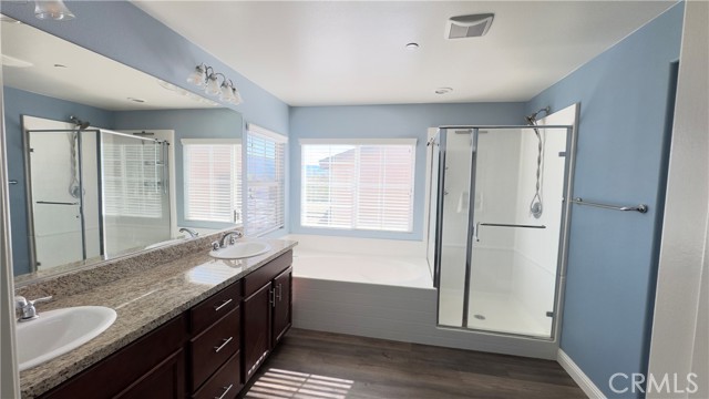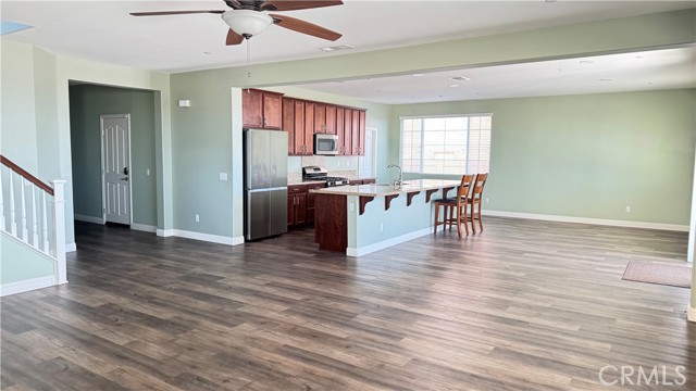 VIEW VIEW! BEAUTIFUL SINGLE FAMILY HOME LOCATED IN THE HIGHLY DESIRABLE ROSENA RANCH COMMUNITY. THIS HOME HAS A 1 BEDROOM AND 1 FULL BATH ON THE FIRST FLOOR, WITH THE PRIMARY BEDROOM, TWO ADDITINAL BEDROOMS, AND A LOFT LOCATED ON THE SECOND LEVEL. ALL UPSTAIRS BEDROOMS OFFER CITY LIGHT VIEWS, WHILE THE LOFT SHOWCASES SCENIC MOUNTAIN VIEWS. THE LAUNDRY ROOM IS CONVENIENTLY LOCATED ON THE SECOND FLOOR. THE SPACIOUS OPEN FLOOR PLAN INCLUDES LAMINATE WOOD FLOORING, RECESSED LIGHTINGM COZY FIREPLACE. THE KITCHEN IS WELL APPOINTED WITH GRANITE COUNTERTOPS, AMPLE CAMBINETRY, WALK-IN PANTRY, AND DINING AREA. A LARGE KITHCEN ISLAND MAKES IT PERFECT FOR ENTERTAINING. BOTH THE FRONT AND BACK YARDS ARE LOW MAINTANICE, AND THE BACKYARD OFFERS BEAUTIFUL, UNOBSTRUCTED CITY LIGHT VIEWS. THIS PROPERTY ALSO COMES WITH FULLY PAID-OFF SOLAR PANELS, PROVIEDING SIGNIFICANT SAVING ON ELECTIRCITY COSTS FOR THE TENANT. THIS HOME COMBINES COMFORT, SPACE, AND EXCEPTIONAL LIFESTYLE IN A COMMUNITY DESIGNED FOR EVERYONE TO ENJOY. ADDITIONALALLY TENANTS HAVE ACCESS TO A MAGNIFICENT CLUBHOUSE FEATURING RESORT-STYLE AMENITIES.