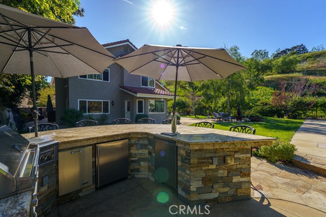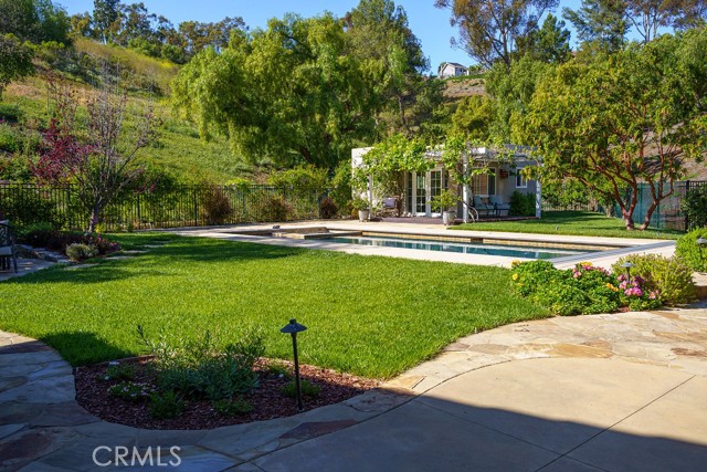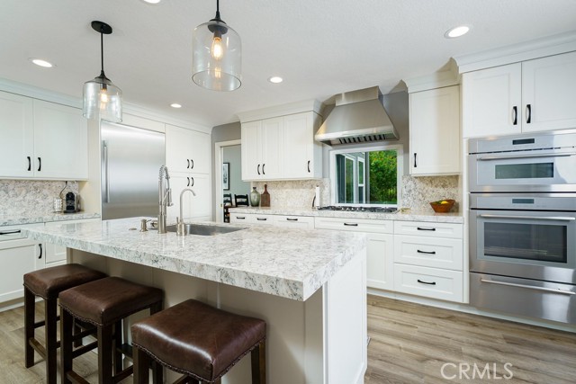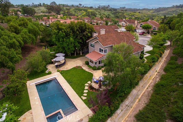 Tucked at the end of a quiet cul-de-sac, this is one of Laguna Niguel's most exceptional and rarely available offerings, a fully remodeled, thoughtfully expanded estate positioned on an approximately 20,000 sq ft lot with just one neighboring home and sweeping natural hillside as your backdrop. Four bedrooms, three baths, a bonus room, PLUS a detached casita combine to create a compound-style retreat where privacy, luxury, and versatility coexist effortlessly. From the moment you enter, the quality of the renovation is unmistakable. The reimagined kitchen anchors the main living area with an expanded layout, a sun-drenched breakfast nook wrapped in windows, and an oversized island with seating all finished in crisp white shaker cabinetry, neutral quartz countertops, and a full Thermador suite including built-in refrigerator, 5-burner gas cooktop, wall oven, microwave/convection oven, warming drawer, and dishwasher. The adjacent family room flows naturally from this space, greatroom style, centered on a wood burning brick fireplace that adds warmth and character. Upstairs, the primary suite is a true sanctuary, featuring a spa-caliber bath with freestanding soaking tub, dual-head walk-in shower, and refined double vanity. Additional bedrooms share a separate wing with a versatile bonus room, ideal as a playroom, home office, or media space. Bathrooms throughout the home have been tastefully renovated with designer finishes. Outside, the property transcends the expected. A resort-scale backyard unfolds behind mature trees and natural hillside, lush, private, and seemingly boundless. The sleek pool & spa w/ electric cover anchor the space, while a fully outfitted outdoor kitchen by Lynx elevates every gathering: premium grill with side burners, multi-tap draft system, under-counter refrigeration, and granite bar top. This is a backyard built for landmark moments, from intimate evenings to large-scale entertaining. The detached spacious casita completes the picture, offering flexible square footage for guests, extended family, or a dedicated home office with true separation. Properties of this size, finish level, and seclusion are exceptionally rare in Laguna Niguel. This one is the kind you wait for. Close to George White Elementary, Chapparosa Park, trails to the beach (all tunneled), 4 miles to Dana Point Harbor and amazing beaches like Doheny and Salt Creek! Shopping and dining options are abundant and include only a 10 minute drive to Laguna Beach!
