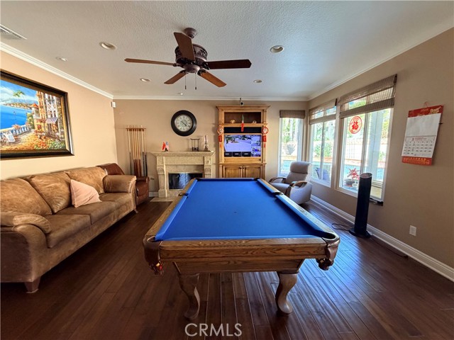 Located high in the scenic hills of Yorba Linda, this beautifully upgraded and meticulously maintained estate offers approximately 3,350 sq ft of living space on a spacious 13,500 sq ft lot. This stunning pool home features 5 bedrooms and 4 bathrooms, including a convenient main-floor bedroom and full bath—ideal for guests or multi-generational living. Enjoy a peaceful and private backyard designed for entertaining, complete with a sparkling saltwater pool and spa (updated in 2021 with new heater, Pebble Tec finish, tile, and automatic cleaner), removable safety gate, built-in BBQ island with bar seating, mini refrigerator, half basketball/sports court, citrus trees, and multiple grassy areas. The home welcomes you with a grand double-door entry and features dual-pane windows with plantation shutters, engineered hardwood flooring, formal living and dining rooms, and a spacious family room with built-ins, surround sound, and a cozy fireplace. kitchen is a chef’s dream, offering custom cabinetry, granite countertops, a center island, walk-in pantry, and high-end stainless steel appliances including Thermador refrigerator and double ovens, Sub-Zero wine fridge, Dacor cooktop, and Bosch dishwasher. Upstairs, the luxurious primary suite features vaulted ceilings, a sitting area with dual-sided fireplace, walk-in closet with custom shelving, and a spa-like bathroom with marble vanities, soaking tub, and separate glass-enclosed shower. Additional bedrooms and bathrooms provide ample space for family or home office needs. Inside laundry room with sink and laundry chute/Culligan water softener & instant hot water system/Dual-zone HVAC with smart thermostats/Pre-wired security system & Ring doorbellAttached 4-car garage with built-ins and attic storage/Located in the award-winning Placentia-Yorba Linda Unified School District (Travis Ranch K-8 & Yorba Linda High School).