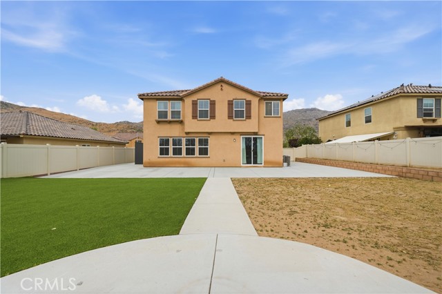 You can buy this home or rent this home for $3,500.00 per month. No lease to own. Just a regular 12-month lease at a time. Welcome to the highly desirable Cove Community in San Jacinto where comfort, efficiency, and modern upgrades come together in one exceptional home. This beautifully maintained 4-bedroom, 2.5-bath residence offers an open floor plan designed for both everyday living and entertaining. Step inside to find upgraded flooring, recessed lighting, and a spacious layout that flows seamlessly from the living area into a well-appointed kitchen featuring granite countertops and stainless-steel appliances. One of the standout features is the downstairs bedroom and bathroom, providing added convenience for guests, multi-generational living, or a private office setup. Upstairs, you’ll find generously sized bedrooms, including a primary suite with a super large walk-in closet. Situated on an expansive nearly 9,000 sqft lot, the backyard is truly a rare find. With artificial turf throughout, you’ll enjoy a clean, low-maintenance outdoor space year-round. The pool-sized lot offers endless possibilities for customization, while hardwired low-voltage landscape lighting creates an inviting ambiance in the evenings. RV parking and an extended driveway provide ample space for vehicles, toys, and guests. This home is also equipped with a solar lease that is incredibly affordable and designed to fully offset utility costs bringing long-term energy savings. For added convenience, a 240V Tesla Level 2 charger is already installed. With its thoughtful upgrades, oversized lot, and prime location, this home offers the perfect blend of functionality and lifestyle. Don’t miss your opportunity to own in one of San Jacinto’s most sought-after communities.