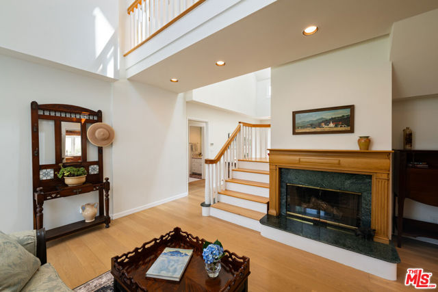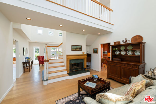 Beautiful Custom-Built Home located in a lovely Mar Vista neighborhood. Designed by an award-winning architect with every attention to detail. Open floor plan offers light-filled rooms, Bay Windows, soaring ceilings, hardwood floors. The center of the home is a continuous raised green marble hearth encompassing 2 back-to-back fireplaces & a wraparound staircase. The living room leads to Family Rm, both with 2story ceilings, and filled with light. Family Room features a built-in entertainment center, open to the dining room with plenty of space to host large gatherings. French doors lead to an open patio and a step-down yard meticulously designed & landscaped for entertaining pleasure. Gorgeous gourmet kitchen, inlaid wood floors, granite counters, custom cabinets, stainless steel appliances, breakfast bar, garden window, Bosch Fridge/Freezer, Miele Dishwasher, Viking 4 burner range with center griddle & custom hood vent, designed for a master chef! 2 large bedrooms downstairs: back bedroom has a French door & overlooks yard. Ascend the open staircase with views to the living areas below. The Primary bedroom suite has a Dressing Area, wrap around closets, skylight; it has vaulted ceilings and a lovely view to the yard below. Prime bath is tiled, with 2 huge vanities, a sunken tub, separate stall shower & water closet. The upstairs 2nd bedroom feels like a tree house, there is a balcony that is large enough for breakfast or coffee for 2. Adjacent to the bedroom is a pretty tiled bath. Large laundry room with side-by-side washer dryer, folding table, closet & window. Extra finished storage above west side of house, perfect for seasonal decor. Ideally located, minutes to beach, Santa Monica, Westwood, Century City & Marina del Rey. 24-hour notice to show.
