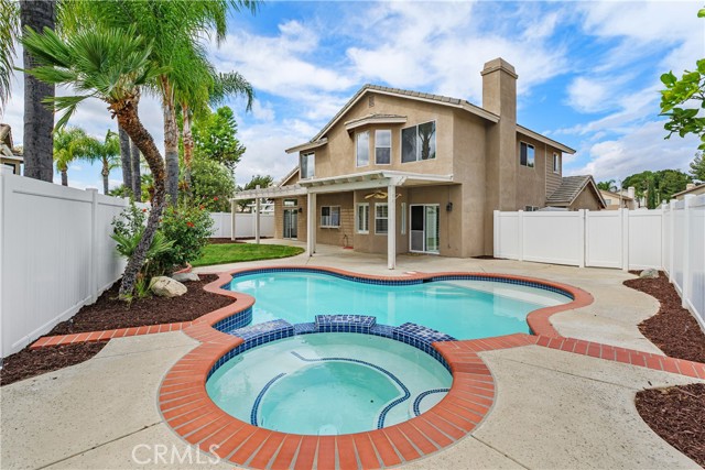 Welcome to this exceptional POOL residence that perfectly captures the ease of Southern California living. Boasting 5 spacious bedrooms and 3 full bathrooms with a pool and spa, this beautifully designed home offers both functionality and comfort. Step inside to discover expansive living and dining areas that seamlessly flow into a generously sized kitchen and inviting family room with fireplace and built in cabinets—an ideal layout for entertaining and everyday living. A convenient downstairs bedroom, and full bathroom provide the perfect space for guests, a home office, or multi-generational living. Upstairs, you’ll find four additional bedrooms, including a large primary suite featuring dual closets, double vanities, and a relaxing soaking tub—your own private retreat. The backyard is truly a highlight, offering a peaceful escape with a private pool and spa, a large grassy area, and expansive patio area. Whether hosting gatherings or enjoying quiet evenings, this outdoor space delivers year-round enjoyment. Additional features include an oversized 3-car garage, extended driveway, and side access for extra storage. Major upgrades such as a newer HVAC system and whole house fan provide comfort and energy efficiency. Ideally located in one of Murrieta’s most desirable neighborhoods, this home is conveniently close to freeways, top-rated schools, shopping, and dining. With low taxes and no HOA, this is an incredible opportunity you won’t want to miss.