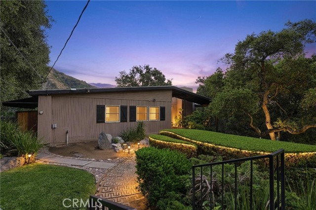 Tucked away on a 10,992 square foot lot adjacent to Monrovia Canyon Park and the Hillside Wilderness Preserve, this unique 1952 home offers a rare opportunity to live surrounded by nature while still being just minutes from town. With majestic oak trees, lush landscaping, and incredible mountain and canyon views, the setting feels like a private retreat. The home features distinctive Japanese-inspired architectural details inside and out, including bamboo siding at the front of the home and sliding Shoji doors that open across floor-to-ceiling living room windows, bringing the outdoors in and filling the space with natural light. The living room also features a dramatic floor-to-ceiling brick fireplace and built-in floor-to-ceiling corner bookshelf and cabinet. A formal dining room with chandelier connects to the galley kitchen through a convenient breakfast bar. The kitchen includes vinyl flooring, electric range, and double sink. The family room is warm and inviting with angled wood siding, adding to the home’s architectural character. Outdoor living is a highlight of the property, with wrap-around wood decking designed to take full advantage of the peaceful setting and surrounding views. The property includes a two-car detached garage and offers direct access to hiking trails, the Canyon Park Nature Center, the waterfall, and Sunset Bench. The area is known for its natural beauty and wildlife — deer, bobcats, and even the occasional bear have been known to wander through, so consider this your very own nature channel, live and in person. If you’ve been looking for a home that feels like a mountain retreat, artist’s hideaway, or peaceful escape surrounded by nature, this special property offers a truly one-of-a-kind setting in beautiful Monrovia.