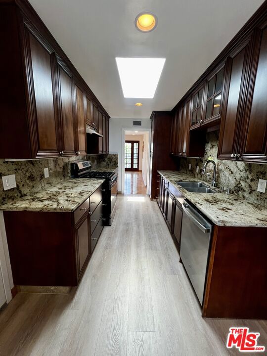 PRIVATE ROOF DECK! Experience the pinnacle of West Hollywood living in this stunning, sun-drenched top-floor condo. Boasting soaring 17' ceilings and dramatic skylights, this 2-bedroom plus loft/office/den residence offers a rare blend of volume, light, and style. The interior features an updated kitchen and elegant flooring throughout, including rich hardwoods and classic travertine. The versatile loft space serves as the perfect home office or den, overlooking the expansive living area. The crowning jewel of this home is the Private Rooftop Deck Lounge. Offering breathtaking views of the Hollywood Hills and DTLA, this is the ultimate sanctuary for entertaining. Located on a beautiful tree-lined street just one block from Plummer Park, you are moments away from world-class dining, shopping, nightlife, and iconic hiking trails. Two parking spaces and additional storage complete this rare find. The perfect spot to entertain guests & soak in the breathtaking views!