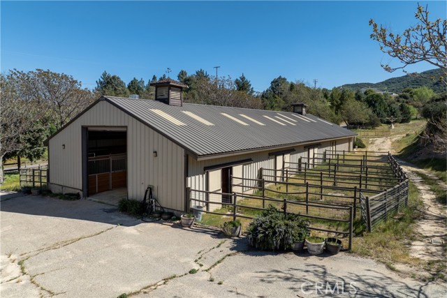 Exceptional 10+ Acre Equestrian Estate Near Lake Elizabeth. Nestled in the scenic Sierra Pelona Mountains foothills of northern Los Angeles County, this rare 10+ acre equestrian estate perfectly blends comfortable country living, premier horse facilities, and breathtaking natural surroundings. The property includes a main two-story residence with the second story fully finished and ready to move in, while the first floor consists of a spacious garage that is already framed and ready to be easily converted into additional lower-level living space. This conversion would add valuable square footage to the home. Drywall, insulation, fire sprinklers, electrical, windows, and cabinets are already in place throughout the structure--plus a spacious 5,500 sq ft metal barn and a 2,200 sq ft additional metal building with a small guest house (not permitted). Designed for serious equestrians and recreational riders alike, the estate features outstanding horse facilities: • Custom 5,500 sq ft barn with 12 horse stalls featuring automatic waters and washing stations, plus a laundry room, bathroom, tack room, office, sewing room, and attached covered patio. • Multiple riding arenas, corrals, mare motel, and electric hot walker. • Abundant hose bibs throughout the horse areas, two electric gates, a large feeding shed, and various outbuildings. • Excellent pull-through capability for large vehicles and trailers across the entire property. Water security is outstanding with two wells and 23,000 gallons of storage capacity. The property also enjoys panoramic views of the surrounding hills and Lake Elizabeth area, plus direct access to private forestry trails right behind the estate and a short hike to the renowned Pacific Crest Trail. This peaceful, private setting delivers turnkey equestrian capabilities with room to expand, all while remaining conveniently close to the greater Los Angeles area. A truly unique opportunity in the Lake Elizabeth / Lake Hughes region.