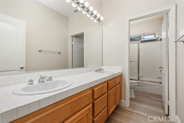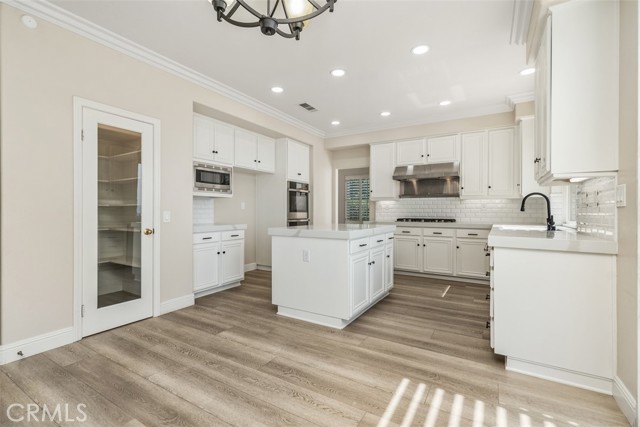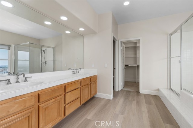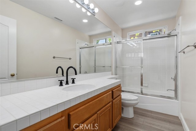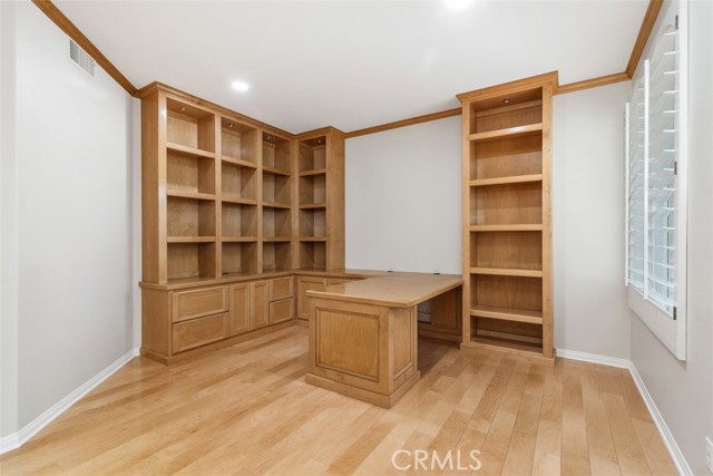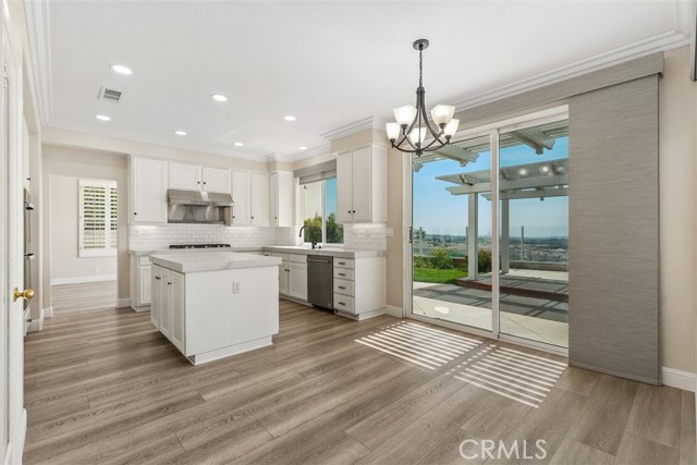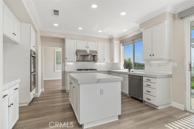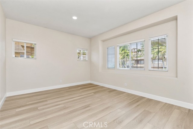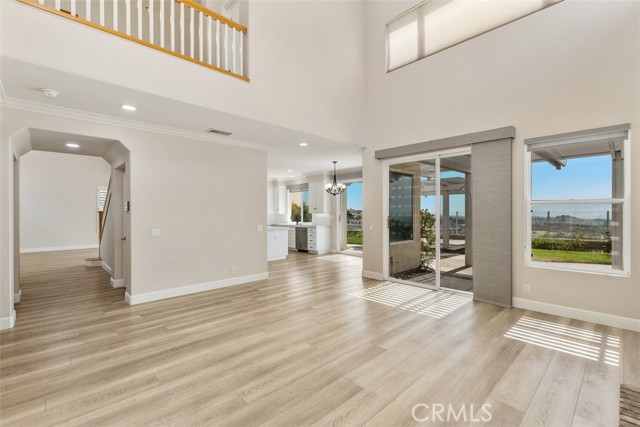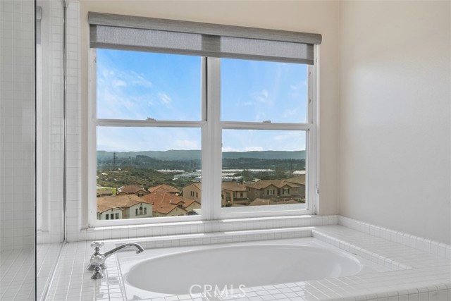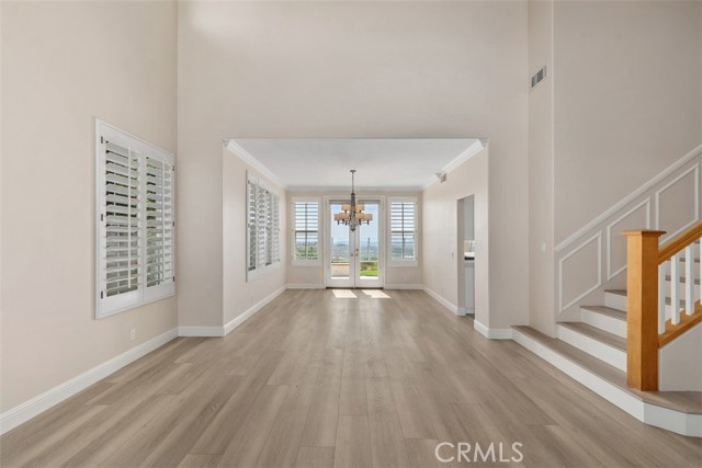 Welcome to this stunning 3,000 sq ft residence offering the perfect blend of luxury, functionality, and breathtaking views. Featuring 4 spacious bedrooms, 3 full bathrooms, and a 3-car garage complete with built-in cabinetry, this home is designed for both everyday comfort and effortless entertaining. Step inside to a grand entry with soaring vaulted ceilings and beautiful luxury vinyl plank flooring that flows throughout the main living areas. Thoughtfully upgraded with plantation shutters and custom blinds, every detail has been carefully curated. The main level includes a private office with built-in desk and shelving—ideal for working from home—alongside a formal living room and an elegant dining room showcasing picturesque backyard views. The heart of the home is the updated gourmet kitchen, featuring quartz countertops, upgraded stainless steel appliances, and a spacious walk-in pantry. The kitchen opens seamlessly to the inviting great room, highlighted by a cozy fireplace and dramatic vaulted ceilings, creating the perfect gathering space. A full bathroom with both a shower and tub, along with a well-appointed laundry room with sink and cabinetry, complete the downstairs level. Upstairs, you’ll find four generously sized bedrooms, including a luxurious primary suite with stunning mountain views. The primary bathroom offers a spa-like retreat with a soaking tub, glass-enclosed shower, dual vanities, and a large walk-in closet. Secondary bedrooms are spacious and bright, complemented by a dual-sink secondary bathroom. Step outside to an entertainer’s dream backyard, where you’ll enjoy incredible city and mountain views—perfect for relaxing or hosting unforgettable gatherings. Located near the scenic trails of Whiting Ranch Park, this home also offers access to fantastic HOA amenities including a pool, tennis courts, and more. This is the one you’ve been waiting for—where comfort, style, and location come together beautifully.