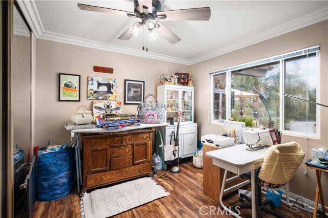 Spacious single-story home located on the iconic, tree-lined Victoria Avenue. Approximately 2,423 sq ft featuring 3 bedrooms with option to convert back to a 4th bedroom, and multiple living areas. Step inside to find crown moulding, vinyl plank flooring, and plush carpeting throughout, creating a warm yet elevated feel. The newly remodeled primary bathroom adds a fresh, modern touch, while natural light fills the home through dual-pane windows. This property brings peace of mind with major system upgrades already completed, including: new plumbing , new sewage system and sewer line, updated electrical panel, and new water heater. Roof replaced in 2012. HVAC system approximately 11 years old. Dual-pane windows provide energy efficiency and natural light. Property includes paid solar system. Exterior features mature citrus trees including lemon, tangerine, and orange. Step outside to enjoy a large backyard with alley access and adu potential. The property also features ample parking and garage storage. French doors from every room that lead to the patio. This home was built for entertaining in the front or back yard. With its open layout and prime location and signifiant upgrades. This home truly stands out. Dont miss out. Located near the Victoria Club, shopping, dining, and local amenities and Poly High School. Home shows pride of ownership.