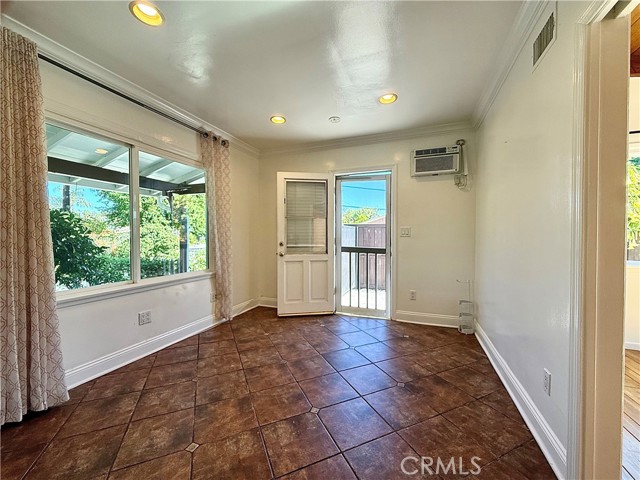 Through a beautifully landscaped garden, on the quietest part of Burbank Boulevard, we are proud to offer this mid-century estate for lease. The common living spaces feature beautiful wood floors and soaring ceilings with gorgeous beams, every corner suffused with natural light. The freshly updated kitchen features stainless steel appliances, gas range, and a lovely eat-in dining nook. The first oversized bedroom grants access to the private backyard with high ceilings and skylight, and the second bedroom features gorgeous built-ins surrounding the bay window with a bench overlooking the lush front yard. Your primary bedroom comes with three large closets, your own personal air conditioning if you don't need to cool the rest of the home, direct backyard access, and an attached bathroom with a spacious soaking tub and luxurious shower. The backyard oasis includes a mature avocado tree, complete privacy, and a two-car garage with laundry room attached. Come discover the perfect balance of home, location, and peace in Woodland Hills.