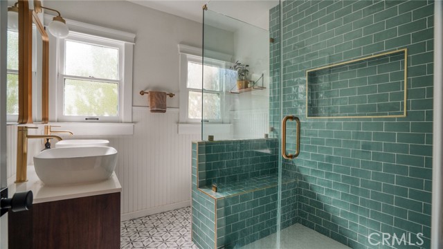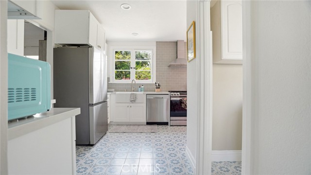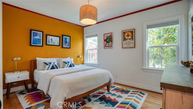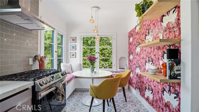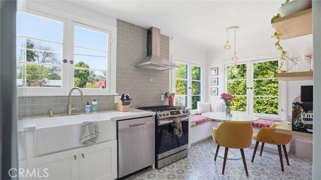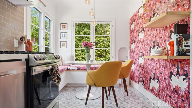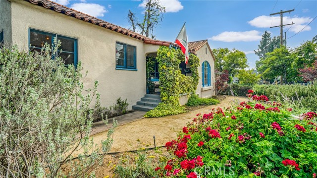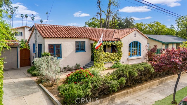Timeless Pasadena charm meets modern upgrades in this gorgeous single-story home featuring abundant natural light, original hardwood floors, and classic Spanish-style details including arches and character windows. Offering 3 light-filled bedrooms and 2 fully remodeled bathrooms, the home blends original character with thoughtful, high-quality improvements throughout. The living room showcases a classic arched picture window, built-ins, and a fireplace highlighting a coveted Claycraft tile piece, set above the hearth. You then flow seamlessly into a beautifully updated kitchen with new Quartz countertops, stainless steel appliance suite, stunning tile work, ample storage and a cozy eat-in breakfast nook with wrap around bench seating and chic wallpaper accent wall. The garage has been transformed into a 200 sq ft garden office with added storage and double French doors creating a flexible space for work or creative use. The fully re-landscaped backyard features a bougainvillea covered pergola, mature fruit trees, manicured California native plants, new irrigation system, and multiple areas to relax or entertain. Recent upgrades include all new electrical and plumbing, a brand new 200 AMP panel, tankless water heater, and a new heat pump HVAC system with updated ductwork and registers. Chandeliers and recessed lighting enhance every room, while new double-paned windows in all bedrooms improve comfort and efficiency. Additional improvements include a new roof over the rear portion of the home, new attic insulation, a WiFi-controlled attic fan, and an EV charger. Conveniently located near shops, groceries, Old Town Pasadena, and the Rose Bowl, this home offers the perfect blend of character, comfort, and modern living.