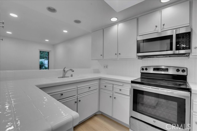 Rare single-level 3-bed, 2-bath home in the sought-after Orangetree community. Ideally located along a quiet greenbelt with mature trees and only one neighbor, offering privacy and a serene setting. A private gated entry opens to an oversized patio with lush landscaping—perfect for entertaining or relaxing. Inside, the open floor plan features stone flooring, fresh paint, and abundant natural light. The updated kitchen includes new stainless steel appliances, white cabinetry, and ample counter space, flowing into the breakfast nook and formal dining area. The spacious primary suite offers a mirrored wardrobe, ceiling fan, and en suite bath. A versatile enclosed great room with sliding doors can serve as a third bedroom. Additional highlights include a 2-car garage with a 200V EV outlet and brand-new washer and dryer. Zoned for award-winning Irvine schools. Enjoy resort-style HOA amenities—pools, spa, fitness center, clubhouse, tennis and pickleball courts—and convenient access to parks, shopping, dining, IVC, UCI, and the 5 & 405 freeways. A rare opportunity!