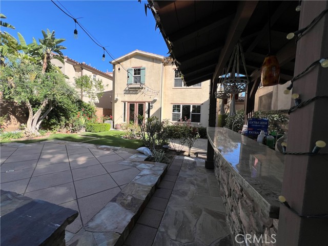 Oversized backyard home located on a quiet cul-de-sac in the highly sought-after Portola Springs community. Although classified as a condo, this residence lives like a single-family home, sharing only ONE GARAGE WALL. Freshly painted and thoughtfully upgraded, this home includes solar and EV charging—saving on electric bill. A brand-new washer and dryer are also INCLUDED. The two-car garage features extensive built-in storage cabinetry, plus additional driveway and ample street parking. From the moment you arrive, you’re welcomed by a charming front porch, a dramatic Dutch door entry, and a private courtyard. Inside, the open-concept floor plan offers a cozy family room with a fireplace that flows seamlessly into the kitchen and dining area—perfect for both everyday living and entertaining. Step outside to your expansive private backyard, ideal for outdoor dining, gatherings, or peaceful relaxation. Built in BBQ with burner and marble island. The space is beautifully landscaped with mature fruit trees 2 pomegranate, 2 lemon one orange and one loquat tree, vibrant rose gardens, and a stunning fountain centerpiece—creating a serene setting with breathtaking sunset views. The gourmet kitchen is equipped with a pot filler, built-in Sub-Zero refrigerator, and premium Wolf stainless steel appliances, including a microwave, gas cooktop, oven, dishwasher, and wine refrigerator and tap filtered drinking water. A convenient downstairs bathroom adds functionality. Upstairs, the home features 3 bedrooms, loft/office area, and 2 bathrooms. Additional highlights include elegant wood shutters throughout, tile flooring downstairs, and carpet upstairs. Ceiling fans in every bedroom. Home comes with a passive speakers built in. The luxurious 30x30 primary suite offers a separate vanity area, upgraded walk-in shower, soaking jacuzzi tub, and a spacious walk-in closet. Residents enjoy access to resort-style amenities including pools, spas, parks, clubhouses, tennis courts, playgrounds, scenic trails, and top-rated Irvine schools. Ideally located near major business centers, John Wayne Airport, train stations, freeways, and toll roads.