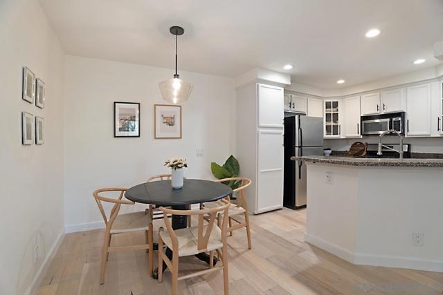Exceptionally remodeled 1 bed 1 bath condo in the charming and desirable Del Mar Villas community of Carmel Valley. This unit is a must see in a prime location on the lower level with a large enclosed patio where you can sit, lounge and enjoy the beautiful, tranquil views of this well maintained park-like setting with lush tropical grounds all year long! Lush greenbelts, water features, benches, BBQ, pool/spa, clubhouse, tennis courts, sauna, fitness room and an amazing trail system minutes away. Interior home upgrades include newer engineered hardwood flooring, newer light fixtures and interior designer paint throughout the home. Kitchen will feature a brand new fridge and has a newer deep basin kitchen sink and faucet. Bathroom has a modern vanity/sink combo and tile flooring. Newer washer/dryer in unit. Nearby Piazza Carmel shopping center with Pavilions, Ace Hardware, Chase, Wells Fargo, Postal Annex, and much more! Quick access to Carmel Grove Park, Del Mar Highlands and One Paseo Shopping Center, freeways 56, 5, and 805, Del Mar Beach, and much more! Schools in DMUSD and SDUHSD.