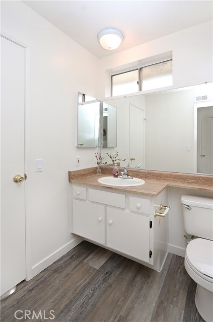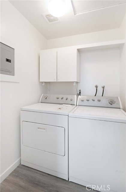Gorgeous unit with newer laminate floors, upstairs end-unit. Enter off Citrus Ave, not need to enter the complex. As you walk up the stairs you are greeted by your front door. An open floor plan combining your living room and dining room welcomes you into your home. The kitchen comes with its own stove, fridge and dishwasher. The hallway has your laundry room (washer and dryer are ready for you), linen closet and access to your two bedrooms and bathroom. One bedroom is to the left, main suite is at the end of the hallway. Two bathrooms share a tub/shower room. Your main suite is large with (almost) wall to wall closet. The private balcony has a water spout and hose to allow you some urban gardening. There is also a closet in the balcony for your extra stuff. Parking: one car garage with a small storage room (no walls between other garages) and an uncovered parking space. HOA boast pool, spa, BBQ and park-like grounds. Close to freeways, transportation, shopping, restaurants, movie theater, Azusa Pacific University and Citrus College. Come see this home before it is gone!