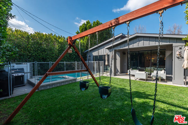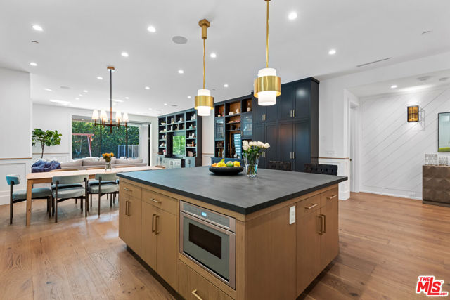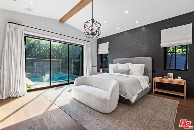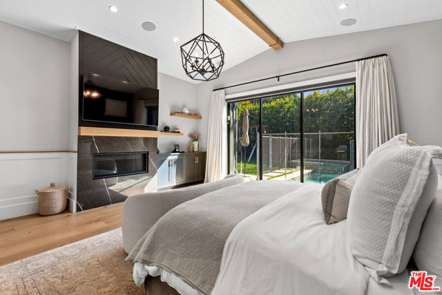 Experience modern farmhouse living in this stunning single-story home, perfectly situated in one of Encino's most desirable neighborhoods. Privately tucked behind gates, this residence welcomes you with charming curb appeal and a covered entry that leads into a fully custom interior, designed to impress from the moment you step inside. The formal living room showcases soaring wood-beamed ceilings, wide-plank European oak floors, and a beautiful stone fireplace. Down the hall, the gourmet chef's kitchen boasts elegant stone countertops, Thermador appliances, and a large island with breakfast bar seating. Adjacent, the formal dining area and spacious great room feature custom built-ins and pocket sliding doors that open seamlessly to the entertainers' backyard. This exceptionally designed home includes 4 bedrooms and 3.5 bathrooms. The luxurious primary suite offers direct access to the backyard, a generous walk-in closet, and a spa-inspired bath complete with soaking tub, glass shower, and dual vanity. Step outside to enjoy a private oasis complete with a sparkling custom pool and spa, waterfall features, and generous space for outdoor dining and relaxation. This home also has an attached garage! Ideally located near Encino's best shopping, dining, and entertainment. This home offers the ultimate combination of style, comfort, and convenience.