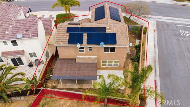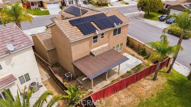 Welcome to this beautifully updated home in the desirable area of the Villages of Avalon community of Perris! This inviting residence offers a bright and open floor plan with spacious living areas, perfect for both everyday living and entertaining. The home features a well-appointed kitchen that flows seamlessly into the dining and living spaces, creating a warm and functional layout, a main floor bedroom and a full bathroom. Enjoy generously sized bedrooms, including a comfortable primary suite, along with thoughtfully updated finishes throughout. Step outside to a private backyard ideal for relaxing, hosting gatherings, or creating your own outdoor retreat. A STANDOUT FEATURE OF THIS HOME IS THE PAID-OFF SOLAR SYSTEM, PROVIDING ENERGY EFFICIENCY AND LONG-TERM SAVINGS FOR THE NEW OWNER. Additional highlights include ample parking, a well-upgraded interior, and a convenient location close to parks, schools, and shopping. Don’t miss this opportunity to own a move-in ready home with modern upgrades and energy-saving benefits! The home also includes a 3-car garage, providing ample parking and storage. Situated in a planned community known for its amenities— including parks, walking areas, and proximity to Lake Perris—this home offers great potential and a flexible floor plan in a convenient location near schools, shopping, and the 215 freeway.