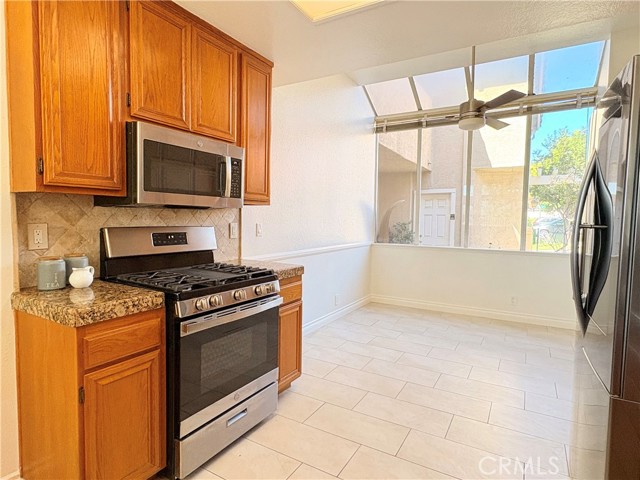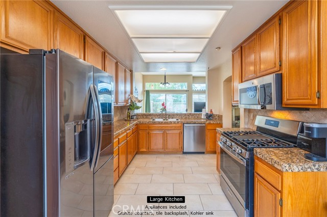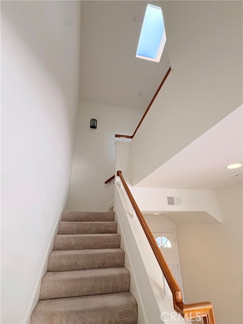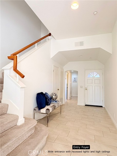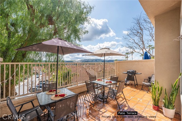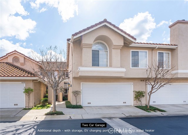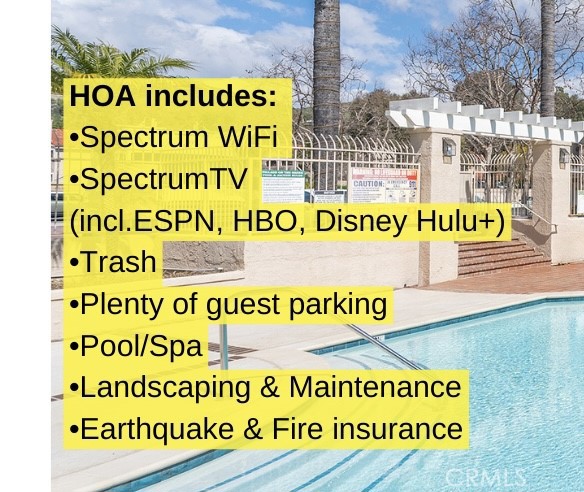 This large freshly painted 2 story townhome at ‘Village on the Green’ in highly sought after Wood Ranch neighborhood with open layout and sweeping views has its own private 2 car Garage with EV charging. Wide Foyer, height ceilings, lots of storage makes it feel like a house. Bright and very spacious kitchen with stainless steel appliances & double sink, granite countertops, bar counter and stone backsplash. Fireplace in Living area, dining room sliding doors open up to large Terrace overlooking the beautiful mountains & golf course beyond — Guest bathroom features granite counter & framed mirror — IN UNIT Laundry room with lots of storage. Cascading stairs with skylight above. Primary bedroom with ensuite bathroom, Kohler double sinks in renovated bathrooms, walk-in closet, and high vaulted ceilings with windows that frame the stunning views. Large gated pool & spa area — close to shopping, dining, golfing, hiking, and easy access to freeways and natural beauty. HOA includes Spectrum Wi-fi, TV streaming, earthquake and fire insurance, trash, lots of guest parking, pool/spa, landscaping & maintenance! Near shops, restaurants, hiking, several golf courses, Starbucks, CVS, huge community park with tons of amenities including sand volleyball, tennis, basketball, baseball, soccer fields, 2 playgrounds and periodic community events!
