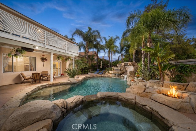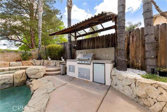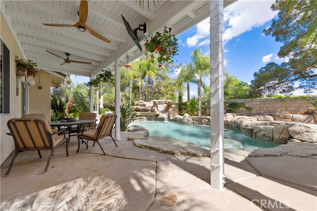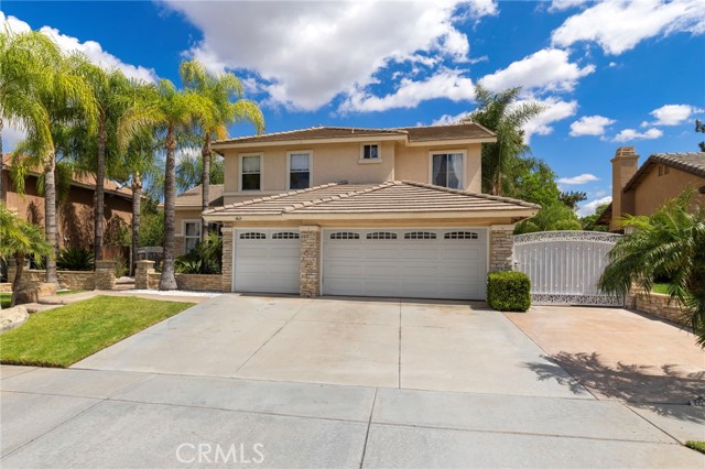 Highly upgraded South Corona Pool/Spa home featuring 4 Bedrooms and 3 bathrooms, including a downstairs bedroom and bathroom. Upgraded kitchen is a chef's delight with granite countertops, stainless steel appliances and new tile flooring that opens up to the family room with custom stack stone fireplace -- perfect for entertaining. The primary suite with French doors to balcony, large bathroom with soaking tub and walk-in closets with custom built-ins. Resort-style backyard with a spectacular rock pool/spa, waterfall, slide, firepit, covered patio, balcony, and built-in BBQ -- perfect for family time or entertaining guest. The front yard makes a striking first impression with mature palm trees, flagstone walls with accent lighting, and convenient RV parking. This home is located in walking distance to Santiago high school. This home won't last long, see it today as it will be gone tomorrow.