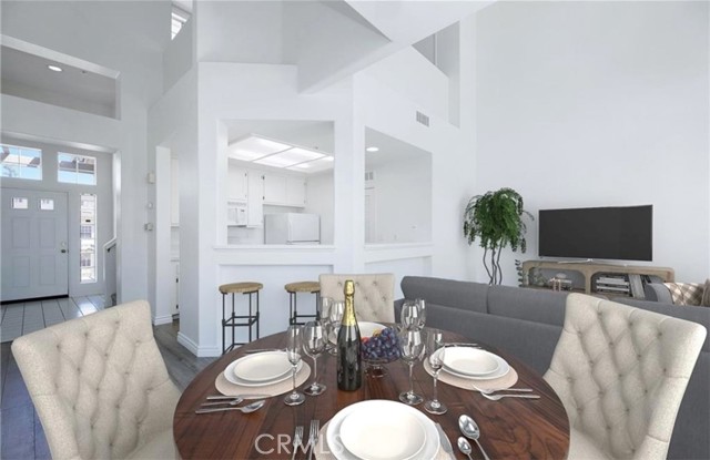Step into this light and bright one-bedroom plus loft retreat, where soaring ceilings and abundant windows create an open, airy atmosphere you’ll feel the moment you arrive. Fresh interior paint, newer laminate flooring, and soft neutral tones provide a clean, modern backdrop that’s both inviting and easy to personalize. Plush carpeting on the stairs and loft adds warmth and comfort where it matters most. Newer HVAC system. Located on the top level, this charming home offers exceptional privacy and peaceful balcony views—the perfect place to unwind with morning coffee or enjoy coastal evenings. The open kitchen flows seamlessly into the living area, making everyday living and entertaining effortless, and comes complete with a refrigerator making this home truly move-in ready. An in-unit laundry closet with a washer and dryer adds everyday convenience. The bedroom features mirrored wardrobes and a ceiling fan, while the versatile loft can easily serve as a second sleeping area, home office, or creative space. A glass-enclosed tub and shower complete the well-designed bath. A rare and valuable bonus for this beach-close location, the home includes a detached private garage, offering secure parking, as well as an assigned parking space. Beyond the home, enjoy resort-style community amenities including a pool, spa and fitness center, and open green spaces designed for relaxation and connection. Ideally located just minutes from beaches, dining, shopping, entertainment, and convenient access to the 73 Toll Road.