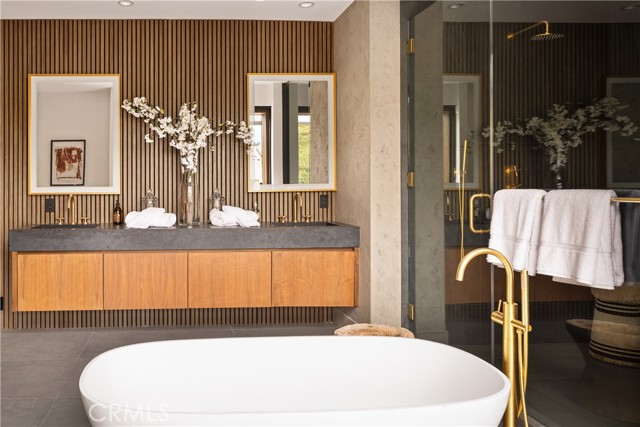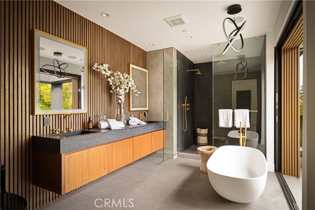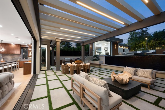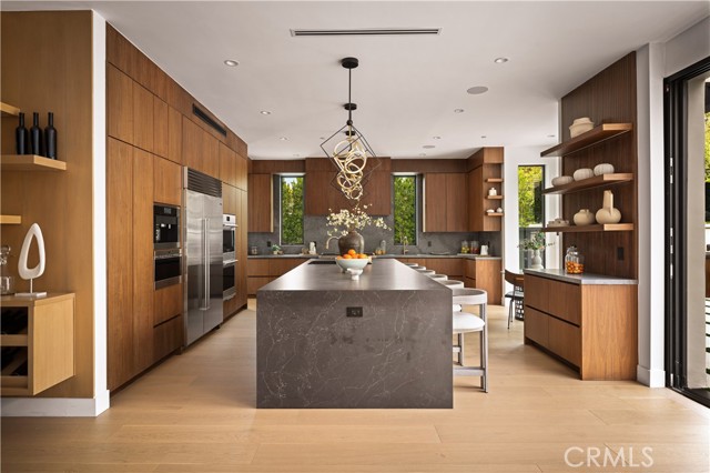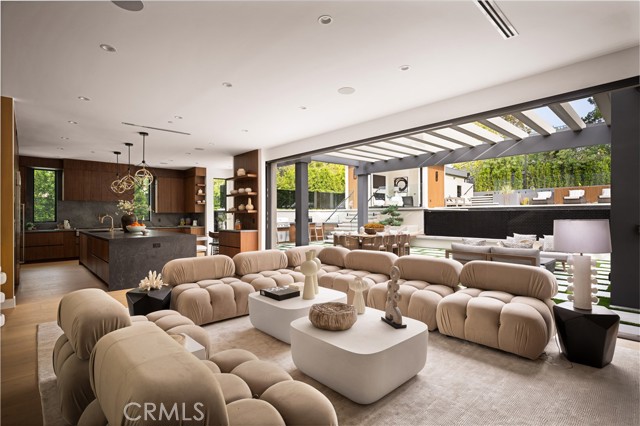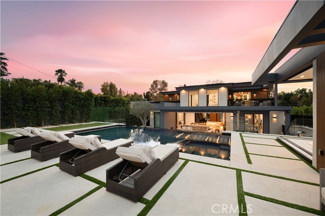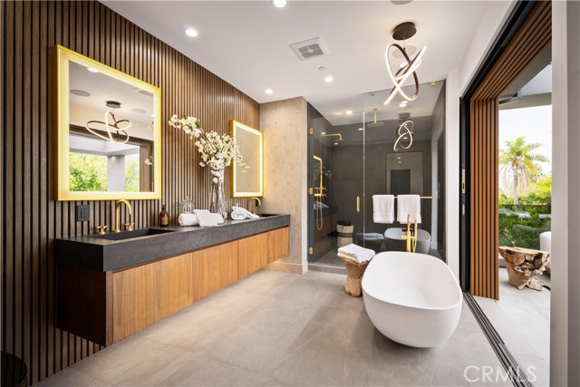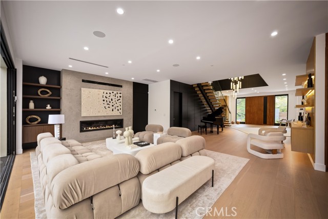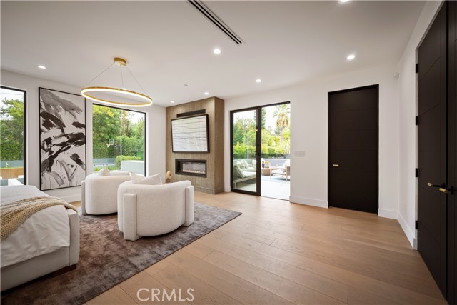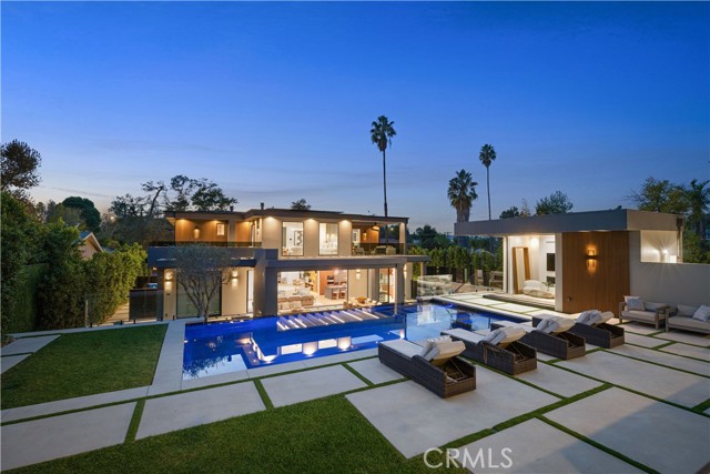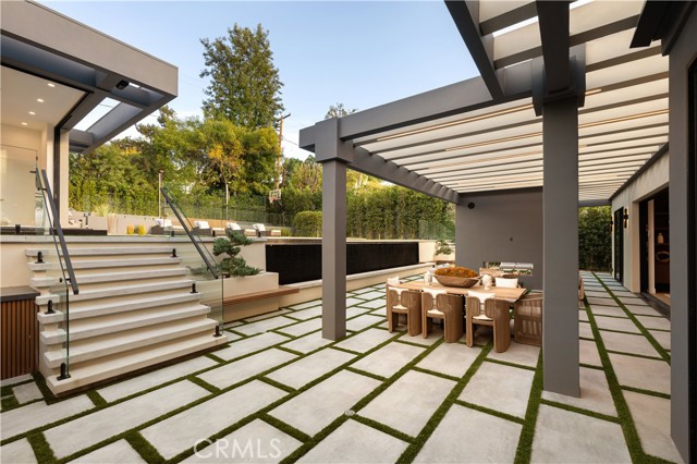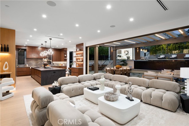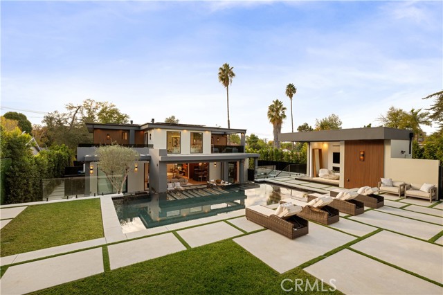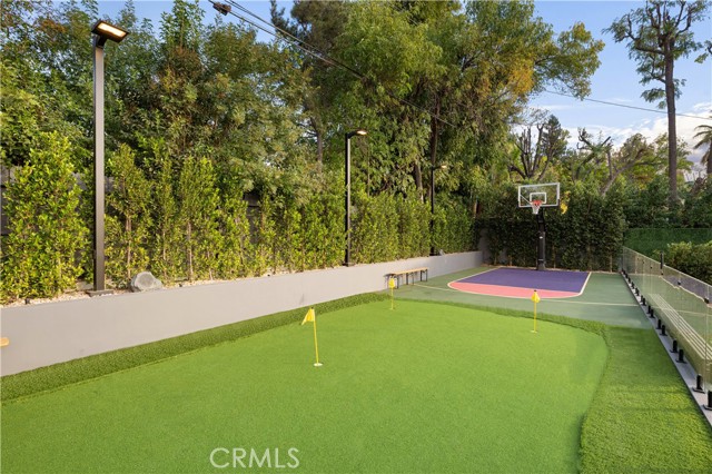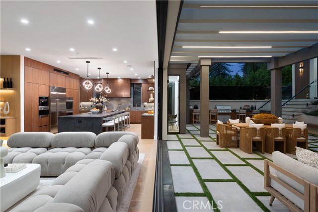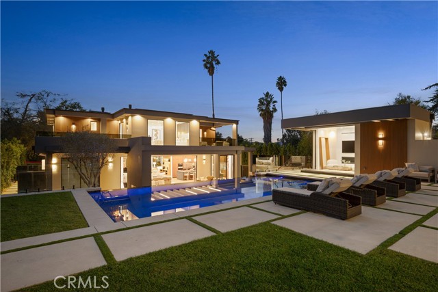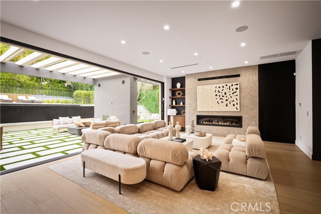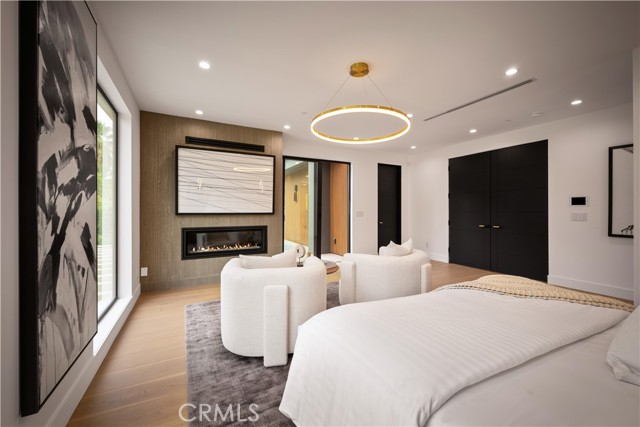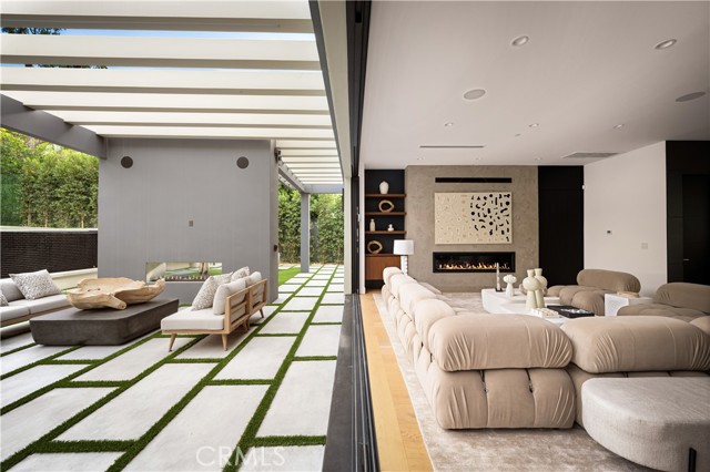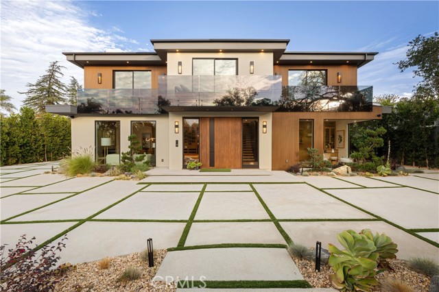Stunning Private Estate South of the Boulevard located in one of the most desirable neighborhoods south of the boulevard, this exceptional private gated estate offers the perfect blend of modern design and luxurious living. Set on beautifully landscaped grounds, the home boasts 5 bedrooms, 7 bathrooms, a study, a media room, and an array of high-end amenities that make it an entertainer's dream. The open floor plan creates a seamless flow between the living spaces, making it ideal for both intimate gatherings and large-scale entertaining. The chef’s kitchen is a culinary masterpiece, featuring Wolf and Sub-Zero appliances, a large center island, quartz countertops, a breakfast area, and a Miele coffee maker. The romantic primary suite serves as a serene retreat with a cozy fireplace, a spa-like bathroom, a large walk-in closet, and two private balconies. Additional highlights include 6 fireplaces throughout the home, a Crestron smart home system, Fleetwood pocket doors, integrated indoor and outdoor speaker systems, and security cameras. The exterior is just as impressive, with lush landscaping, a large reverse infinity pool and spa, a pool house, and a fully equipped outdoor kitchen with a 5-burner stove, BBQ, and beverage refrigerator. A covered patio with dual fireplaces is perfect for year-round entertaining and relaxation. For active pursuits, there’s a lighted sport court and a putting green, ensuring there’s something for everyone. Other standout features include a detached garage with ample parking space for luxury vehicles, RVs, and tour buses, as well as room for 10+ additional cars. The property is fully equipped with solar panels and underground utilities for enhanced sustainability. This home offers unparalleled privacy, comfort, and style, making it an ideal sanctuary for those seeking the ultimate in luxury living.