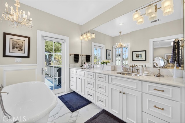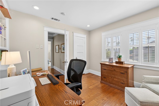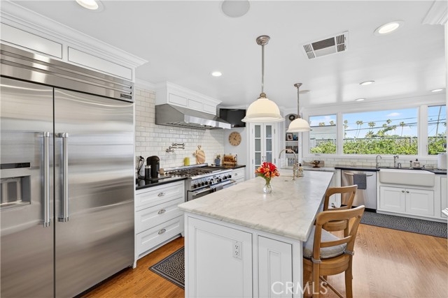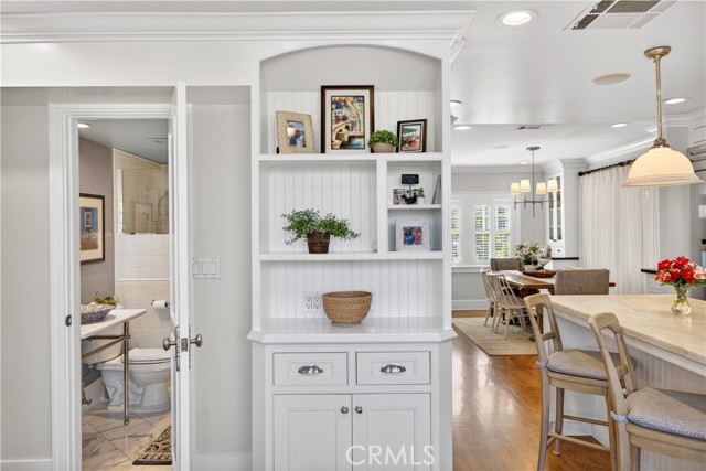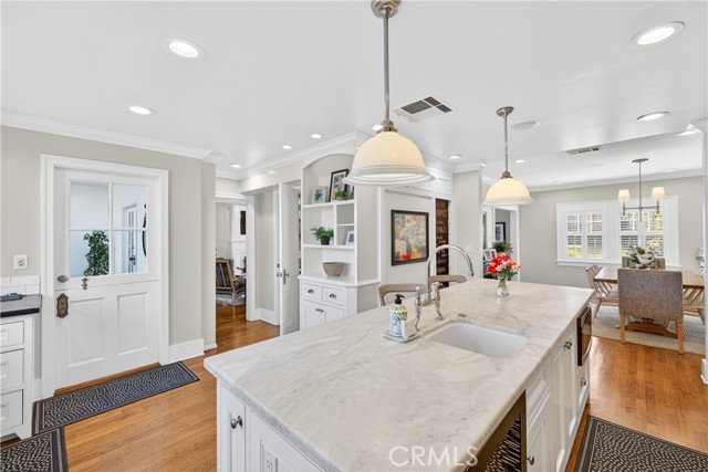 Built in 1920, this beautifully updated Colonial Revival, located in sought-after Belmont Heights, blends timeless architecture with a pristine coastal aesthetic. Lovingly cared for and thoughtfully improved over time, the home reflects true pride of ownership. Defined by its classic symmetry and inviting curb appeal, it is rich in character with hardwood floors, plantation shutters, and a warm, welcoming fireplace, while beautiful built-ins throughout—including bookcases and integrated storage—add both character and function, with thoughtful design evident in every detail. The chef’s kitchen is both functional and beautifully appointed, featuring Carrara marble countertops, a top-of-the line Thermador range & refrigerator, dual zoned wine fridge, a walk-in pantry, and custom cabinetry. Designed with flexibility in mind, the home offers four bedrooms, including one currently transformed into a stunning custom closet. The spacious primary suite features dual walk-in closets and a spa-like bath with a large standalone soaking tub, and opens to a private deck overlooking the backyard, pool, and spa—an inviting extension of the living space. Additional highlights include an upstairs laundry room, abundant storage, and owned solar. The outdoor setting is ideal for entertaining, featuring an elevated dining area overlooking the pool, a cabana/den that can easily function as a guest suite, a pool and spa, and an outdoor fireplace that anchors the space. Perfectly located just blocks from the beach and moments from the shops and dining of 2nd Street in Belmont Shore, this home offers classic style, thoughtful upgrades, and effortless coastal living.