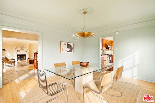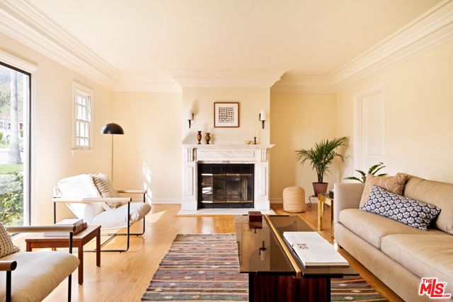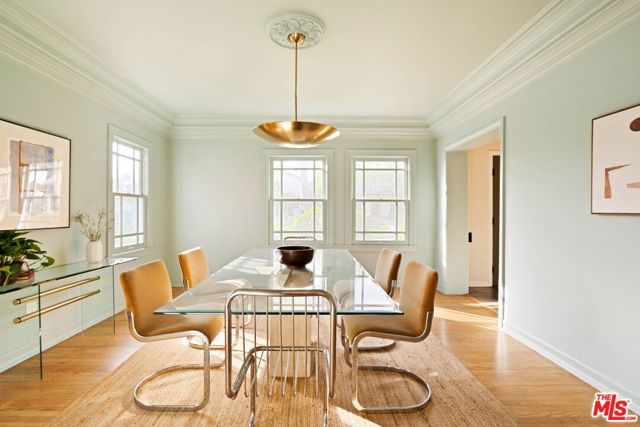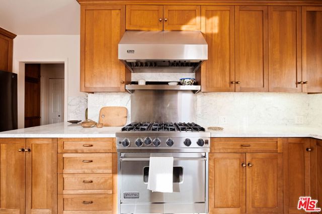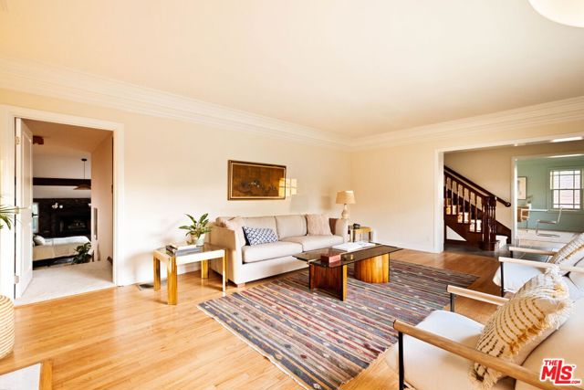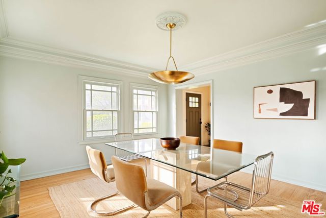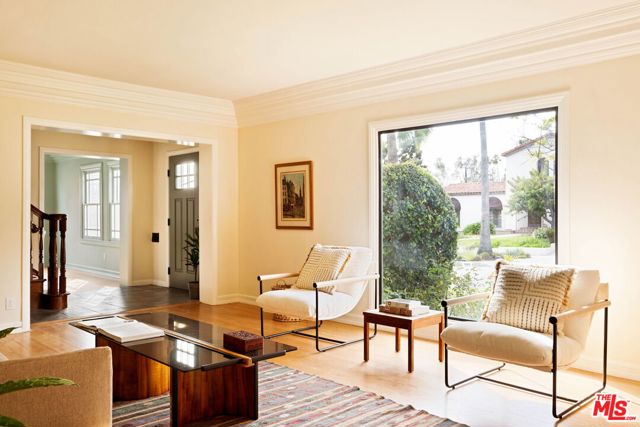 Nestled in Glendale's endlessly photogenic and architecturally storied El Miradero neighborhood, this gloriously illuminated 1929 Spanish Colonial exquisitely blends vintage character with modern design that is timeless--where modern updates have been carefully chosen to complement the home's original character, creating a sense of enduring style that feels authentic to both the residence and its historic surroundings. Located within the highly coveted Glendale school district with sought after dual-language immersion magnet programs, this alluring Grande Dame is surrounded by striking 1920s homes and sits just one block from spectacular Brand Park--home to The Japanese Shoseian Teahouse and historic Brand Library. Upon entering, natural light floods this four-bedroom, three-bath residence, with sunlight glistening across freshly refinished original hardwood floors. In the living room, an oversized picture window frames the picturesque street while the marble flanked fireplace beckons guests to relax and linger. Stepping down from the living room is the captivating primary suite with soaring beamed and vaulted ceilings, its own fireplace, walk-in closet, and French doors that open to the patio and backyard. The spa-like primary bath impresses with a freestanding soaking tub within a generous shower, dual sinks, and custom cabinetry. Beyond the living room, the formal dining room features a bank of vintage windows that pour light into the space. The adjacent chef's kitchen is as functional as it is stunning, showcasing custom wood cabinetry, quartz counters, an enviable six-burner Viking gas range, pantry, and abundant storage. A door off the kitchen invites effortless al fresco dining and gathering on the deck. Tucked behind the kitchen are the laundry area, a second bedroom, currently used as an office, and a full guest bathroom. Upstairs, two oversized bedrooms offer views, generous closets and share a third bath. Storage throughout the home is exceptional, highlighted by a rare walk-out basement with nearly 600 square feet of usable space--ideal for a studio, workshop, or potential ADU while preserving the two-car detached garage. The backyard is a verdant oasis, a tranquil respite from the city, inviting moments of calm beneath mature trees with glorious canopies. Additional upgrades include an owned solar system, new sewer line, and a newer roof. Located in the most desirable part of El Miradero, tucked between Brand Park and just two blocks from the delightfully charming Kenneth Village shops, cafes and restaurants, this preeminent beauty on an idyllic, tree-lined street will ensure you'll never set eyes on another again.