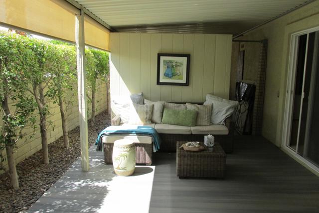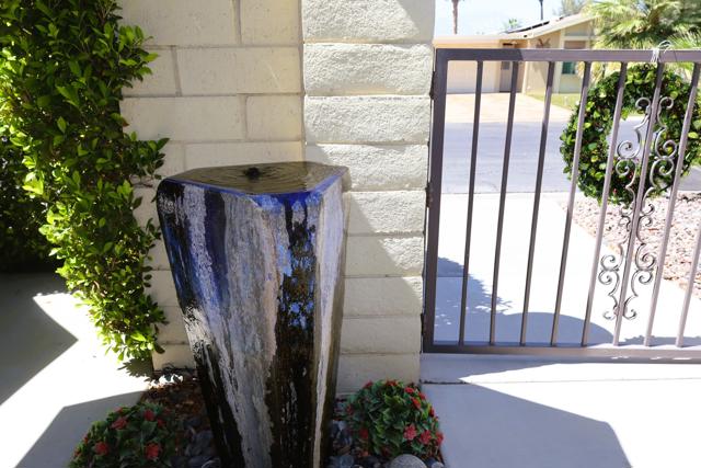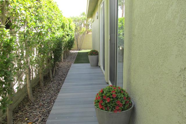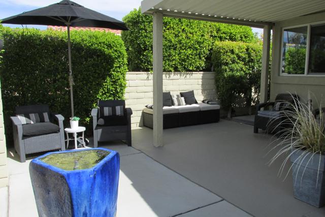 Exceptional & beautifully remodeled Palm Desert home offering privacy & elegance in the 55+Golf Community of Portola Country Club. Professionally decorated with impeccable taste. Furrnishings & decor are included making this the perfect Desert home for your immediate enjoyment. A Private courtyard enclosed by a lush Ficus hedge & beautiful outdoor furnishings sets the stage for the peaceful & elegant home inside. No detail spared in the contemporary remodel & decor of this Desert oasis. The open concept kitchen has custom European-style cabinetry, quartz counters and a beautiful island with plenty of storage. Light & open with Dual Pane windows, spa-inspired bathrooms adjoining both bedrooms, large family room open to the kitchen with a separate guest powder room. An additional private covered patio adjoins the guest & utility room. There is an enclosed single car garage with additional driveway parking and custom groundscape & walls enclosing the property for privacy and room for your canine friend. Portola C.C. offers an 18-hole Par 3 golf course, pickleball, clubhouse, 3 pools & spas, dog park & many activities all included with your low monthly HOA fee & you own the land. Make an appointment today for a tour of this beautiful home.