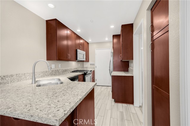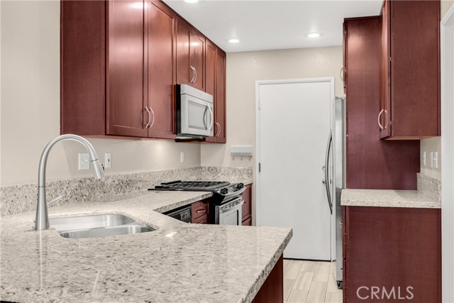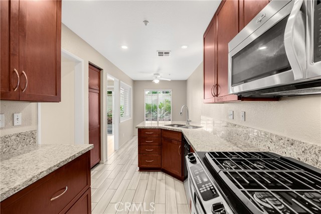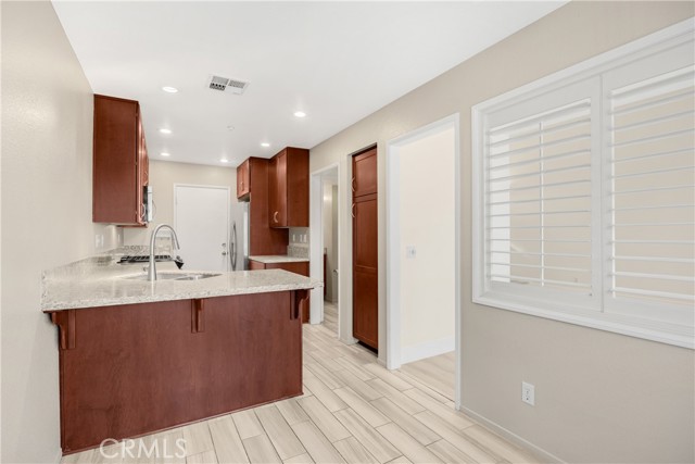Step into elevated comfort and style in this beautifully updated 3-bedroom, 2-1/2-bath condo available for lease. High ceilings create an airy feel, complemented by fresh upstairs paint and upgraded vinyl laminate flooring throughout. The primary bathroom features elegant quartz countertops and a modern walk-in shower, offering a relaxing retreat. The kitchen is equally impressive with stone countertops and stainless steel appliances, perfect for everyday living and entertaining. Enjoy a private oversized patio—ideal for gatherings or quiet moments outdoors. An attached two-car garage provides convenience, along with private laundry for added efficiency. Located near excellent schools and close to shopping, dining, and everyday essentials, this home blends comfort, style, and convenience in one exceptional space.