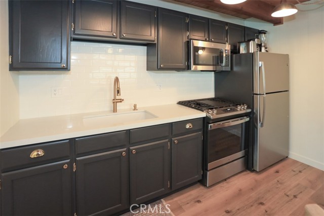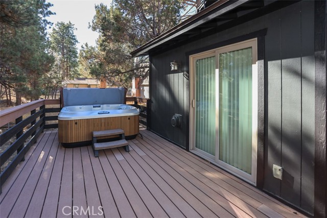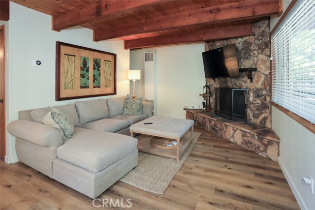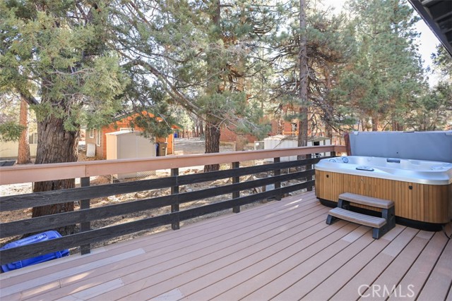 Welcome to your ideal, turn key, mountain retreat in Big Bear —a beautifully updated 2-bedroom, 2-bathroom cabin that combines comfort and charm. Situated on a serene wooded lot, this property offers the best of both worlds: close proximity to ski slopes, hiking trails, lake activities and year-round attractions, while still providing the peace and privacy buyers are looking for in a mountain escape. Inside, the home has been thoughtfully remodeled with new flooring throughout, fresh interior paint, updated fixtures, new bathroom vanities, new tankless water heater, new wall heater and all new, modern kitchen appliances and quartz countertop. The open and inviting living area features a cozy wood-burning fireplace—perfect for winter nights—while ceiling fans keep the space comfortable during warmer seasons. The fully equipped and remodeled kitchen is ideal for both everyday use and hosting guests. Step outside and enjoy the newly painted exterior onto a private back deck designed for relaxation, complete with a jacuzzi where you can unwind under the stars and enjoy the natural surroundings. Or sit on the front patio and enjoy the evenings sunsets. The wooded setting enhances the sense of seclusion and true mountain living. Whether you're searching for a personal getaway, a second home, or a short-term rental investment, this property offers versatility, comfort, and desirable location in one of Southern California’s most sought-after destinations.