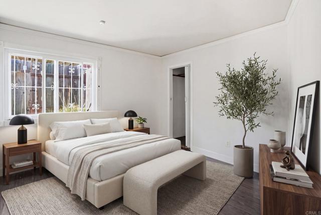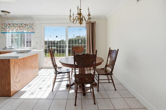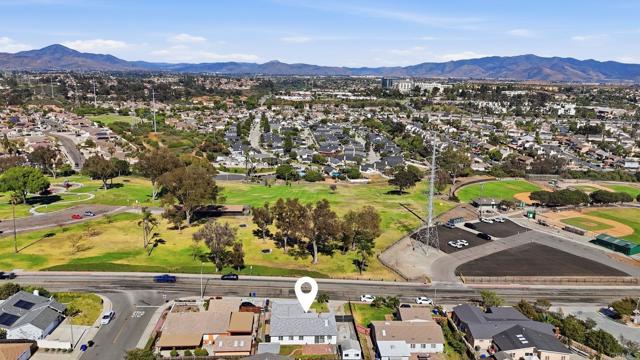 Spacious and inviting, this single-level 4-bedroom, 1.75-bath home is perched on a gentle slope, capturing beautiful sunrise views to the east and sunset vistas to the west. Located just east of the 805 with no HOA, this property offers both freedom and convenience in a well-established, family-friendly neighborhood. Inside, the open floor plan is enhanced by recent upgrades including fresh paint, a new roof, new windows, laminate flooring, and upgraded crown molding and baseboards. The kitchen features tile countertops, a skylight for natural light, a breakfast bar, and upgraded appliances including a gas stove. Ideally situated directly across from Greg Rogers Park and baseball fields, you’ll enjoy easy access to outdoor recreation right outside your door. The home’s elevated position brings in refreshing breezes and a sense of privacy and tranquility. Step outside to a spacious and private backyard, complete with three detached storage/work sheds—perfect for hobbies, projects, or extra storage. One of the standout features is the exceptional off-street parking: a gated RV/boat parking area with hookups, a two-car garage, and plenty of additional space for vehicles and recreational toys. Conveniently located near schools, shopping, dining, and with quick access to the 805, this home offers a great opportunity to add your personal touch and make it your own.
