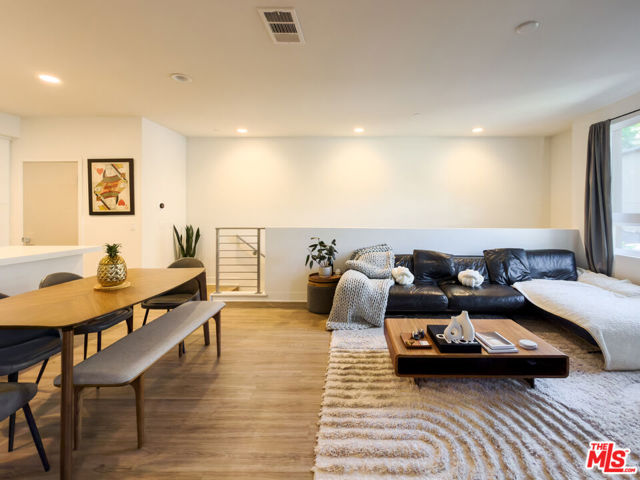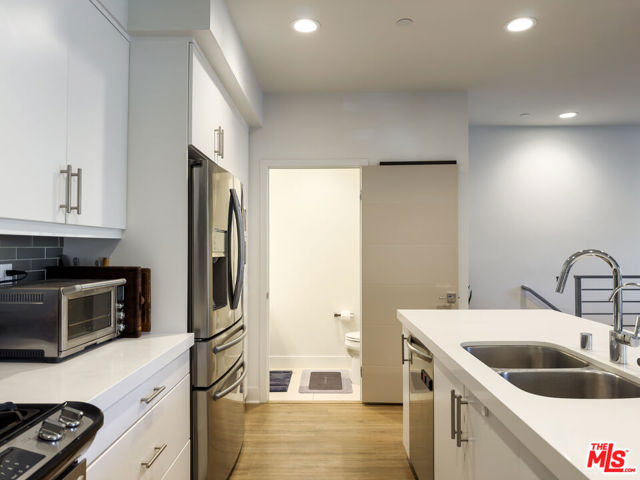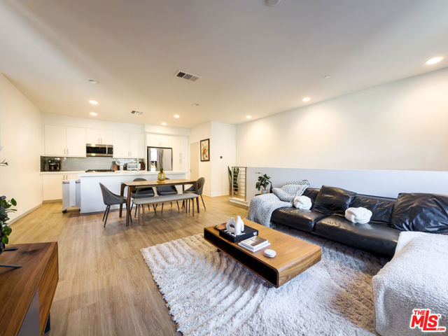 Welcome to one of Hollywood's most coveted addresses, a stunning 2018-built townhouse-style condo nestled within a sleek, gated community just moments from the best dining, entertainment, and culture the city has to offer. Spanning 1,588 square feet across multiple levels, this thoughtfully designed residence delivers the space and privacy of a home with the ease of modern condo living, ideal for young professionals and creatives who want to be at the center of it all while staying connected to every corner of LA via the 101 and 405 freeways. The sun-drenched main level features an open-concept kitchen, dining, and living area with warm hardwood-style flooring, recessed lighting, and a clean, contemporary aesthetic throughout. The chef's kitchen impresses with crisp white cabinetry, a subway tile backsplash, stainless steel appliances, and a generous island perfect for entertaining. The dining area flows seamlessly into a relaxed living room with a private balcony, ideal for morning coffee or evening unwinding.Upstairs, two spacious en-suite bedrooms each offer their own full bath, with the primary suite featuring a large walk-in closet with built-in shelving and drawers an organizer's dream. A convenient powder room on the main level rounds out the thoughtful layout. An in-unit washer and dryer adds everyday convenience.The crown jewel of the home is the expansive private rooftop terrace a true outdoor living room complete with string lights, a gas BBQ, and lounge seating with open sky views across the Hollywood Hills. A charming covered alcove off the terrace offers the perfect nook for a home office with a view, making remote work or study feel anything but ordinary. It's the ideal space to host, create, or simply decompress above the city. Additional highlights include a 2-car tandem garage, 4 guest parking spots, a dog run, and gated security. Trash is covered by the landlord; tenant is responsible for electricity, water and gas. This is Hollywood living at its finest a rare opportunity for those who demand both style and substance in the heart of LA.