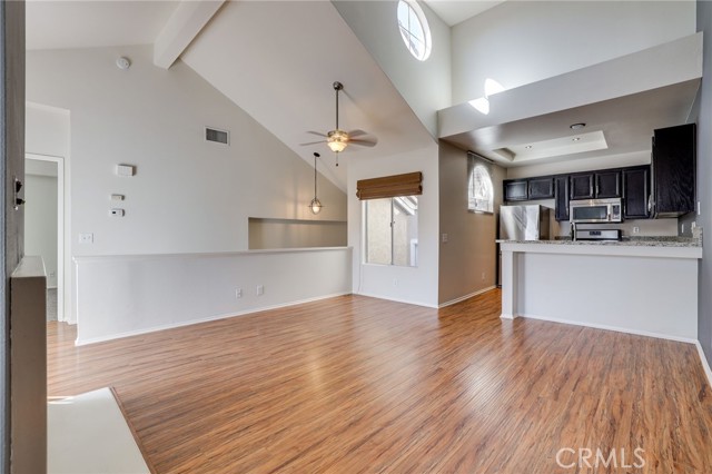 Welcome home! Beautifully updated home in the Expressions Community. Large vaulted ceilings make this home light, bright and with a multitude of windows to view the beautiful outside. Upgraded wood like flooring, completely remodeled bathroom and updated kitchen make this home ready to move in now. Home has nice deck including storage that also comes with central A/C & heating! Large detached garage right next to front door entrance. Brand new carpet in the bedroom and dual master sinks in bathroom. Washer & Dryer in unit! You are minutes away from top-rated schools, fine dining restaurants, and the renowned beaches & Tide pools of Laguna! Right off the 73 & 5 Freeways, a perfect location to get to the Mission Viejo Mall, Costco, and race down PCH Highway!