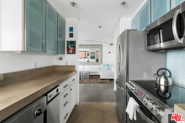 The epitome of coastal California living! This residence is a corner unit with tranquil views of the water. Open concept living space with cool concrete floors and abundant amount of natural light with sight-lines of the marina, ocean, and mountains. Private front patio to enjoy the ocean breeze and bask in the sun. Or if you prefer your feet in the sand, beach access is just moments away. Stainless steal appliances, walk-in closet and wash dryer in-unit. 2 tandem parking spaces in controlled access garage, plus guest parking spaces and access to a bike storage room. Great proximity to Marina del Rey, downtown Playa del Rey and Venice!
