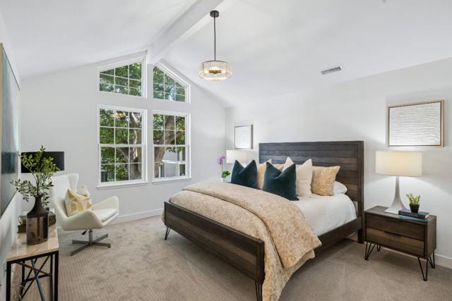 Located in one of Silicon Valleys most coveted locations, this exceptional end-unit offers a rare combination of contemporary design and everyday functionality. Featuring approximately 1,400 square feet of thoughtfully designed living space and a serene, peaceful setting, this is one home you will not want to miss. Meticulously upgraded throughout, this outstanding residence truly embodies the phrase move-in condition. The kitchen features a seamless blend of modern elegance and functionality, along with stainless appliances, quartz countertops, and contemporary European style cabinetry. The floor plan is outstanding and includes three expansive bedrooms with two and one-half modernized bathrooms. Additional luxuries include in-unit laundry, high-end appliances, and a temperature-controlled wine cooler, combining everyday convenience with sophisticated living. The private, low-maintenance rear yard is designed for both intimate relaxation and stylish entertaining. This boutique community is both private and convenient. Situated near Google, Apple and Facebook/Meta, and everyday essentials including groceries, coffee shops and restaurants are all within a short walk. Easy access to major highways and VTA light rail further enhances the appeal of this prime Silicon Valley location.