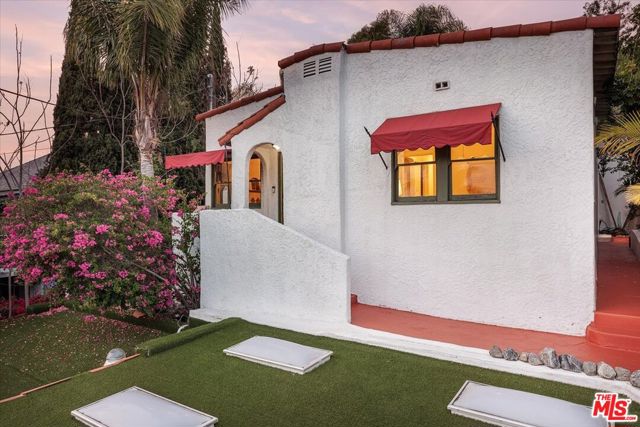 Tucked behind a private wooden gate in the hills of Echo Park, 2123 Branden welcomes you into an expansive compound where classic Spanish architecture meets a serene, resort-like garden retreat. Set on a generous 7,460 square foot lot, the property offers a rare sense of space and privacy in the heart of the neighborhood. A staircase leads to the main home, where original Spanish details set the tone; curved archways, a statement fireplace, and a warm, light-filled living and dining room reflect the home's timeless architecture. Two bedrooms and a hall bath anchor this charming front portion of the home. Beyond, a spacious kitchen opens to a fully permitted addition designed as a tranquil retreat. Soaring ceilings, skylights, and high windows fill the space with natural light, creating an airy atmosphere reminiscent of a Balinese estate. An additional family room and expansive primary suite both open through double French doors directly to the garden, blurring the line between indoors and out. The primary suite features a walk-in closet and a beautifully appointed en-suite bath finished in Venetian plaster with wood accents. Outdoors, the property becomes an enchanting oasis with multiple seating and dining areas woven throughout mature landscaping, lush succulents, and towering birds of paradise. A hot tub and lounge area invite relaxation, along with two outdoor dining spaces. Set within the garden is a charming one-room bungalow with a lofted sleeping area, ideal as a studio, office, or creative retreat. Nearby, the second dining area includes an outdoor kitchenette with sink and mini refrigerator, creating a secluded gathering spot surrounded by greenery. At street level, additional flexible space offers even more possibilities. With its own separate entrance, this one-bedroom unit includes a kitchen, bathroom, generous living and work area, and sleeping alcove. Spacious and versatile, it works beautifully as a guest suite, creative studio, workspace, or even a private music studio. Thoughtfully set apart from the main residence, it adds another layer of uses and possibilities to this unique compound. A detached storage garage and parking for up to four cars provide rare convenience. Private, versatile, and filled with character, this distinctive property offers a tranquil retreat in the heart of Echo Park.